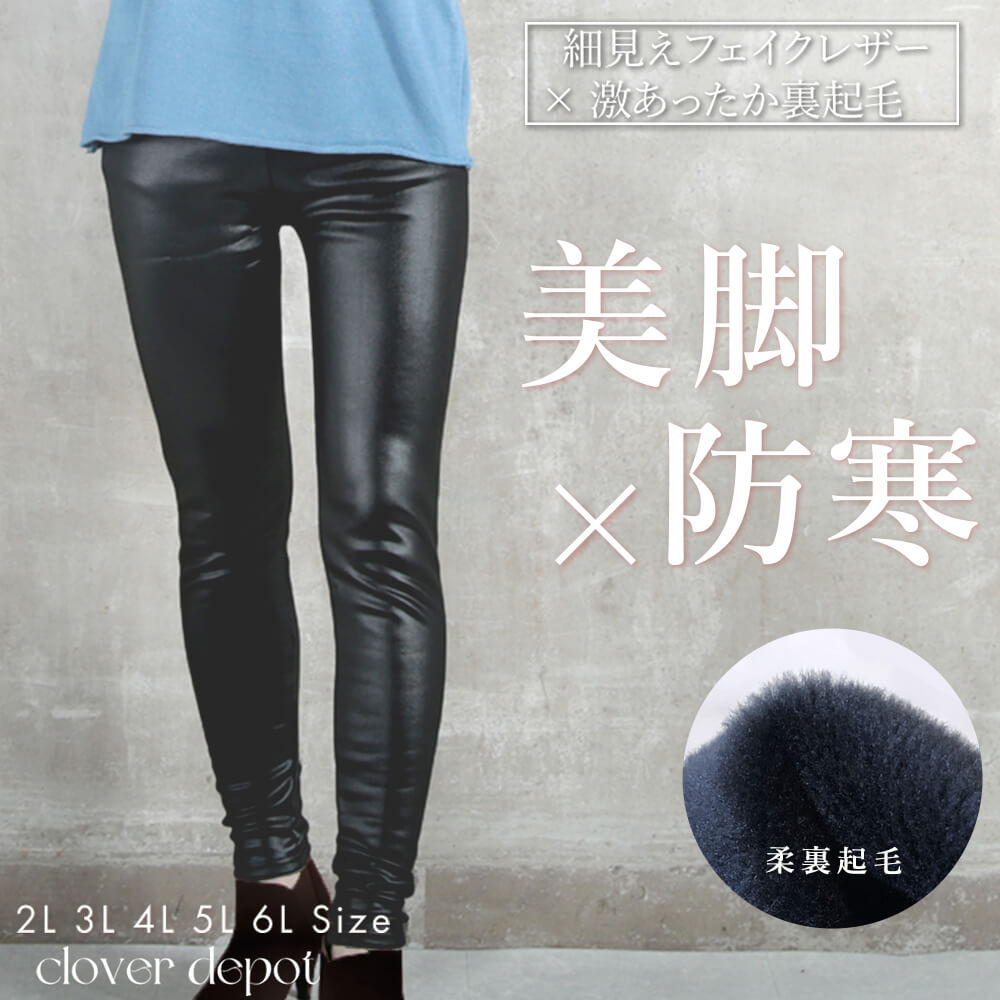 フェイクレザー風レギンス レザースキニー 大きいサイズ 黒 2L/3L/4L/5L