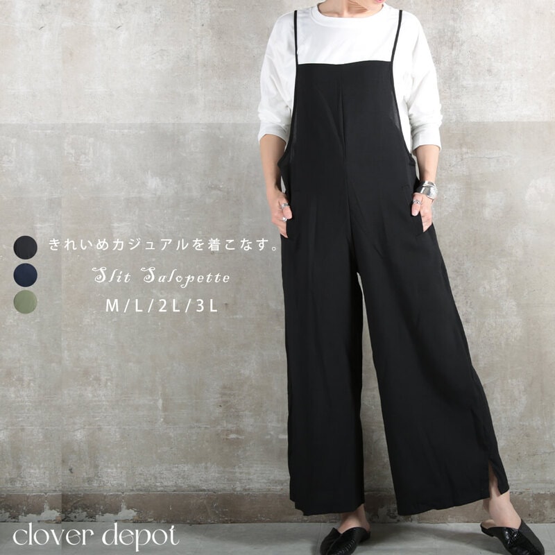 サロペット コンビネゾン ポケット付き 裾スリット ワイド 3color