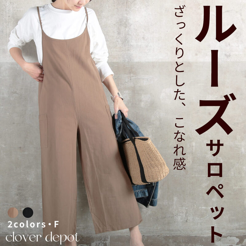 サロペット オールインワン おしゃれ レディース コーデ ポケット ワイド フリーサイズ 2color