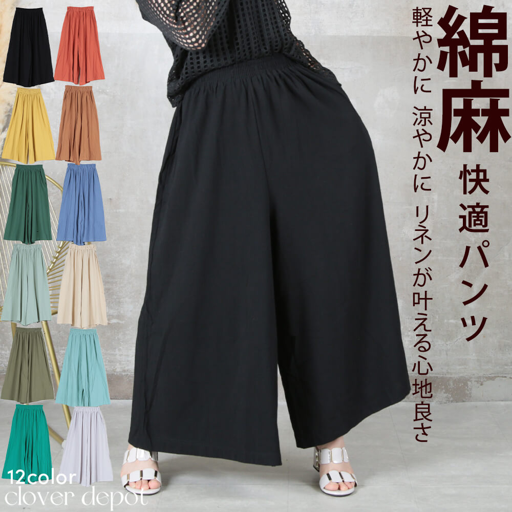 フレアパンツ リネン風 薄手 裏地付き ワイド M/Lcm 12color