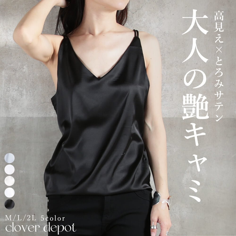 キャミソール サテン インナー レディース M L 2L 5color