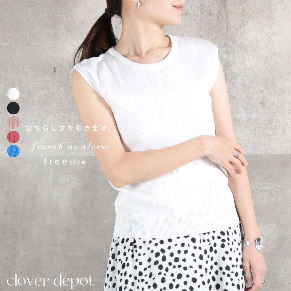 サマーニット ラウンドネック フレンチ ノースリーブ 5color