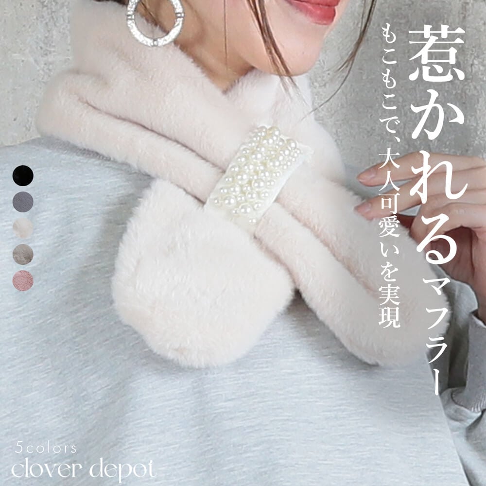 フェイク エコファー マフラー チャーム留め具付き フリーサイズ 5colors