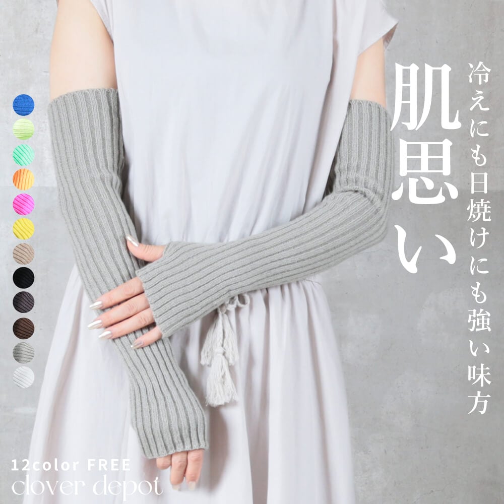 冷え対策 ロングアームカバー 指穴付き フリーサイズ 12colors