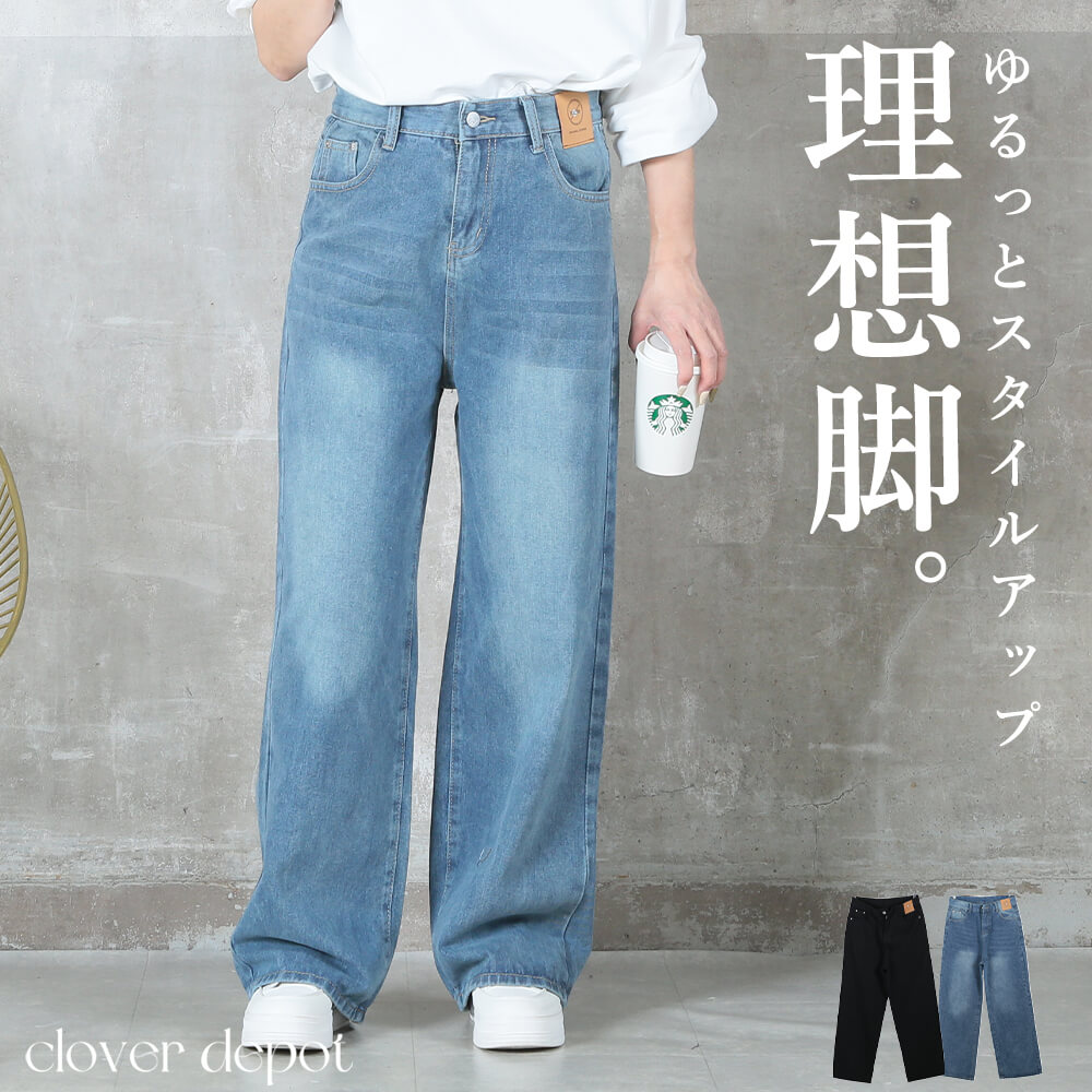 デニム ワイドストレートパンツ ゆったり 体型カバー ロング丈 M‑L‑2L sizes 3 colors