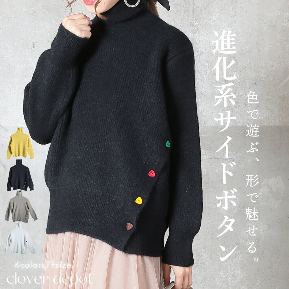 ニット トップス セーター ハイネック タートル レディース おしゃれ 袖 リブ フリーサイズ 4color