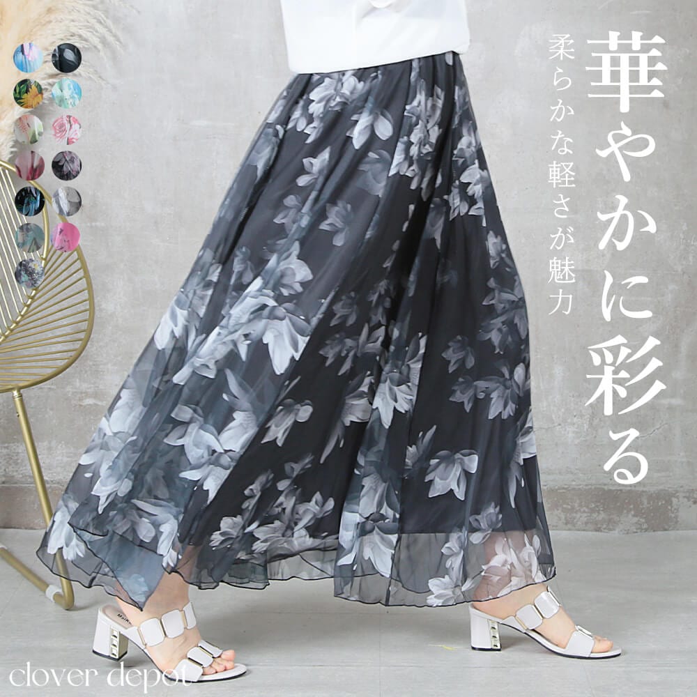 フレアスカート 総柄 薄手 裏地付き ロング 11color