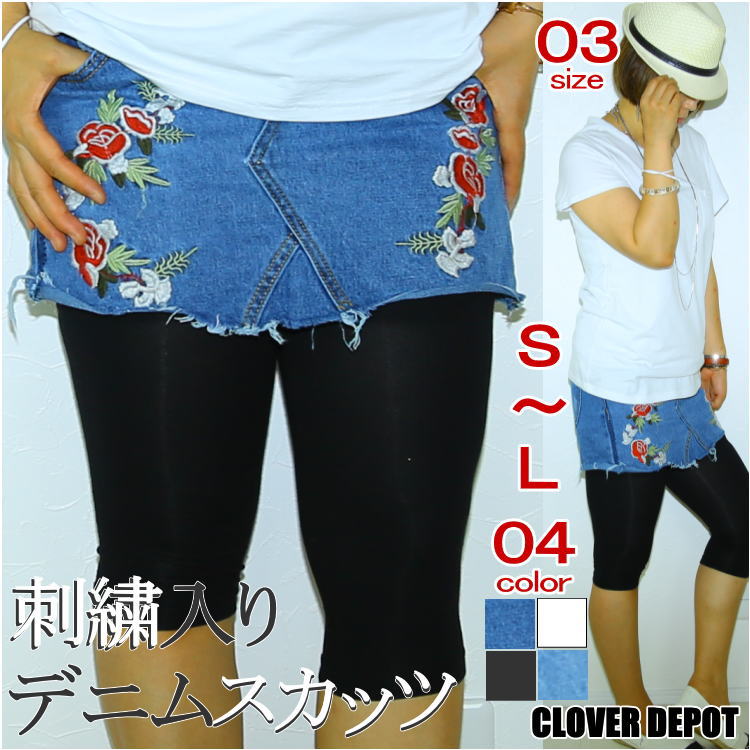 スカッツ ミニスカート 花 刺繍入り デニム ミニ S/M/L 4color