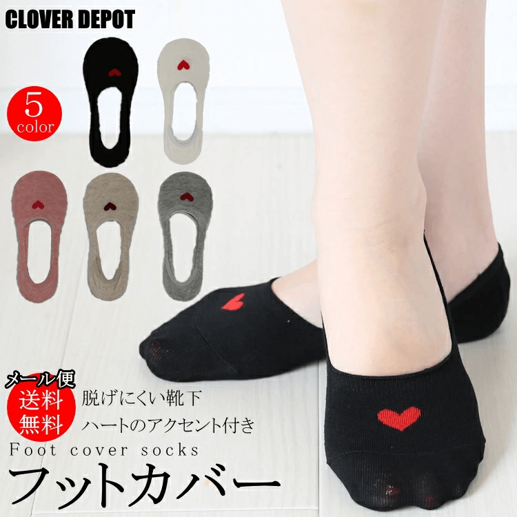 コットン混 フットカバー 靴下 ハート ワンポイント 極薄 脱げにくい かかと滑り止め 5color