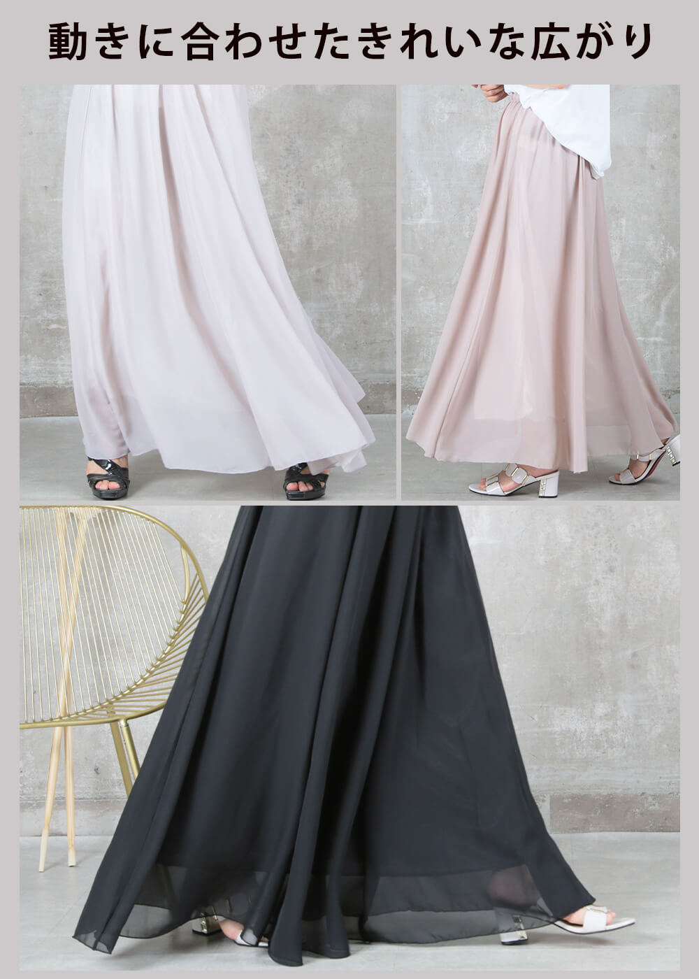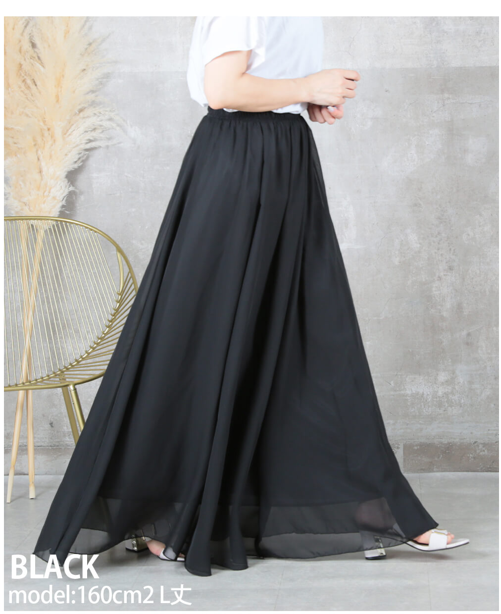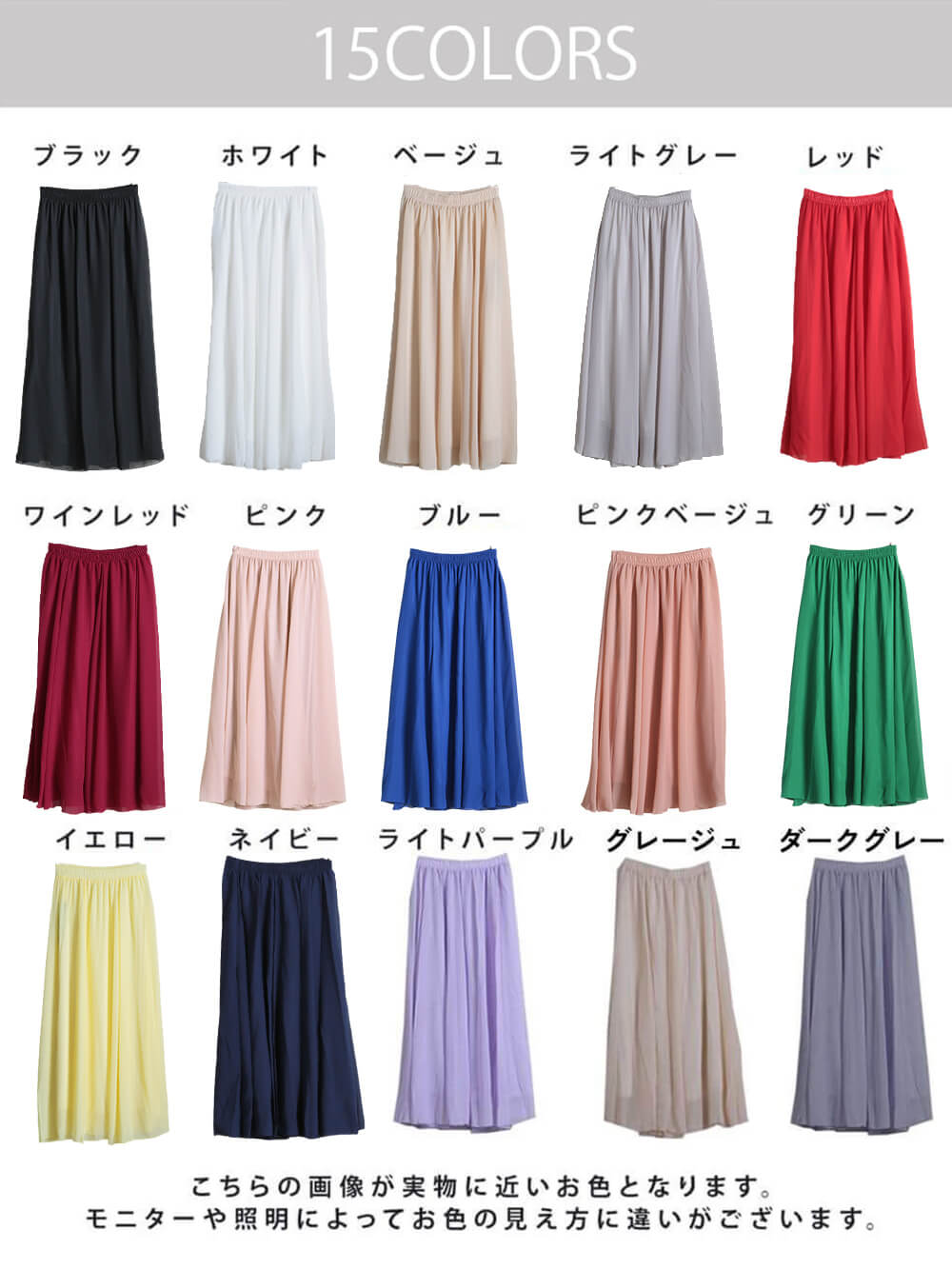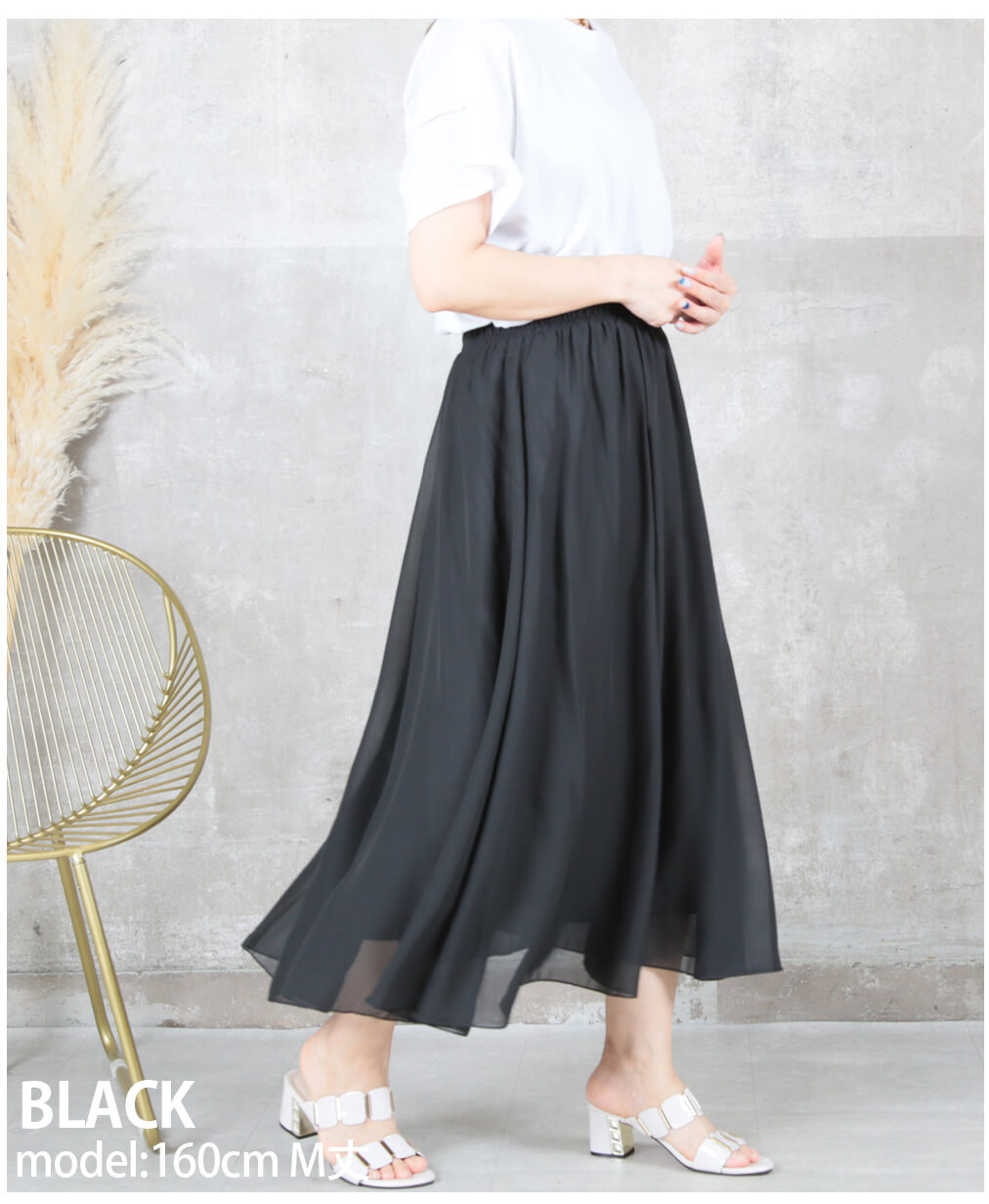12color 80/90/100cm 薄手 マキシ シフォン フレアスカート