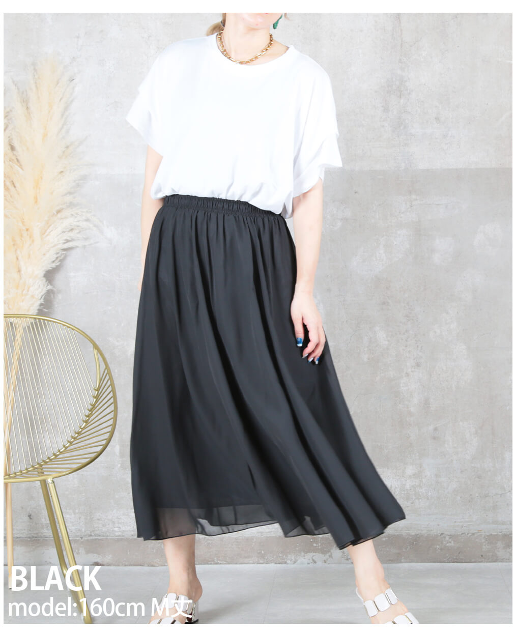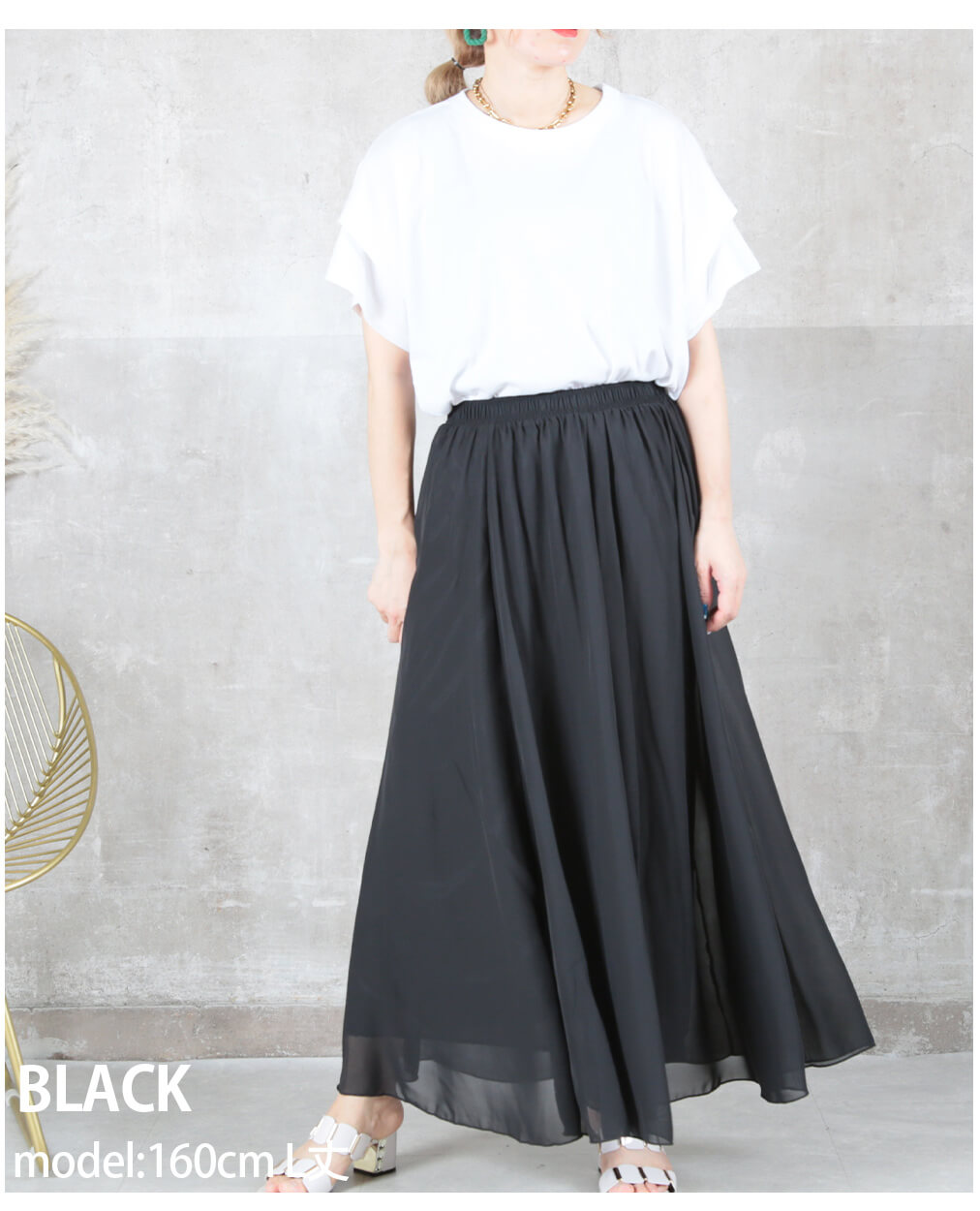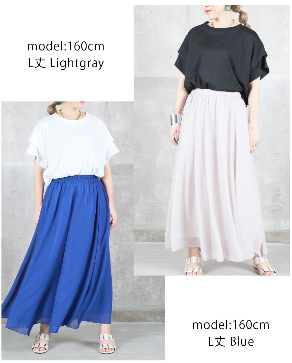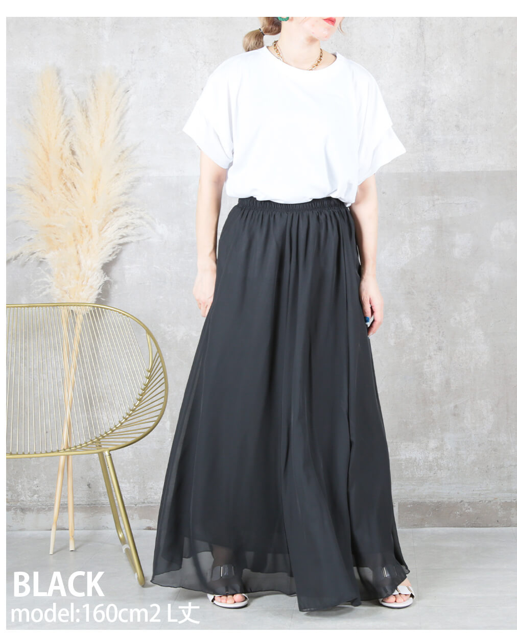12color 80/90/100cm 薄手 マキシ シフォン フレアスカート