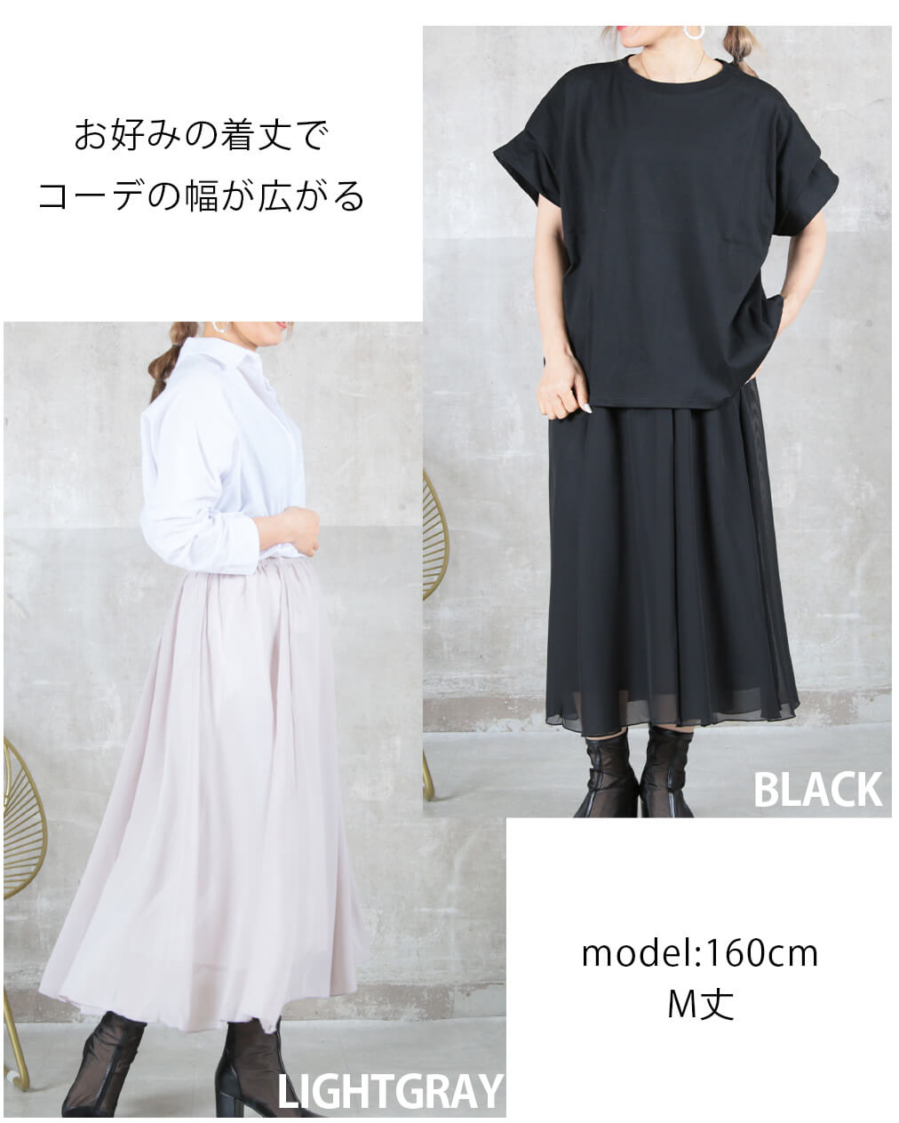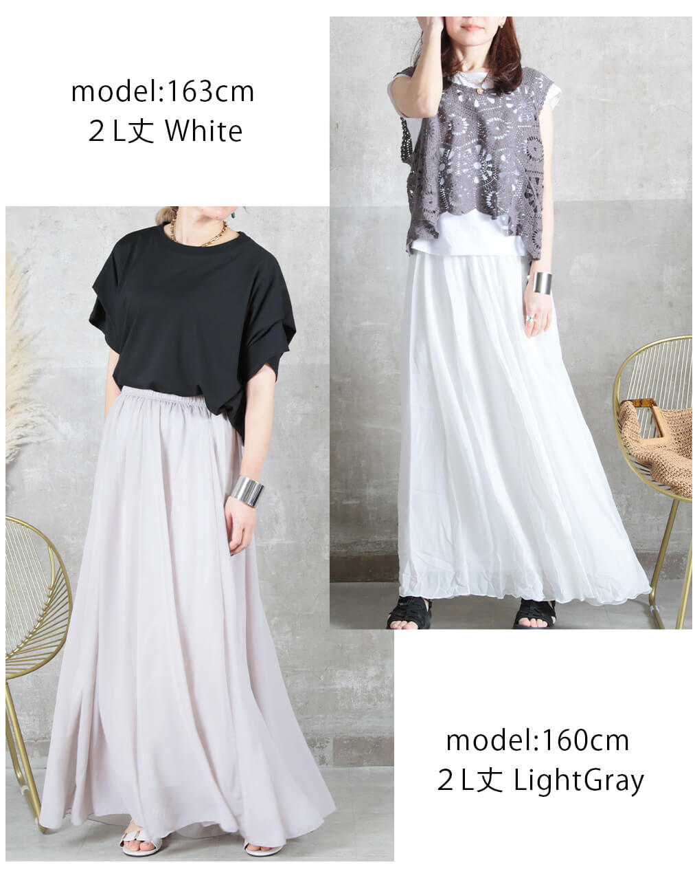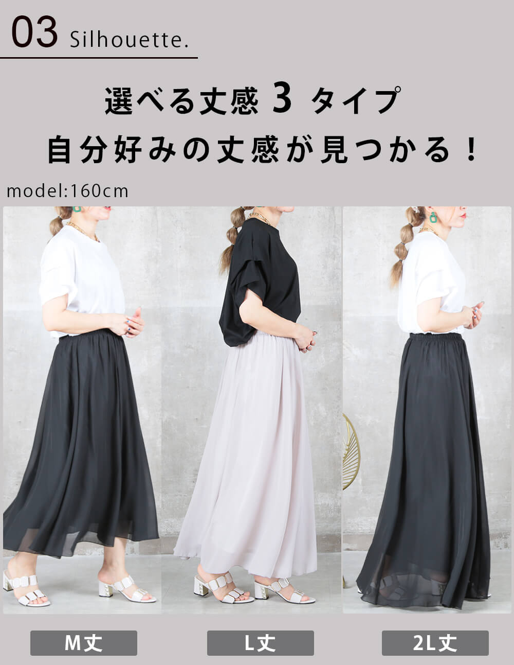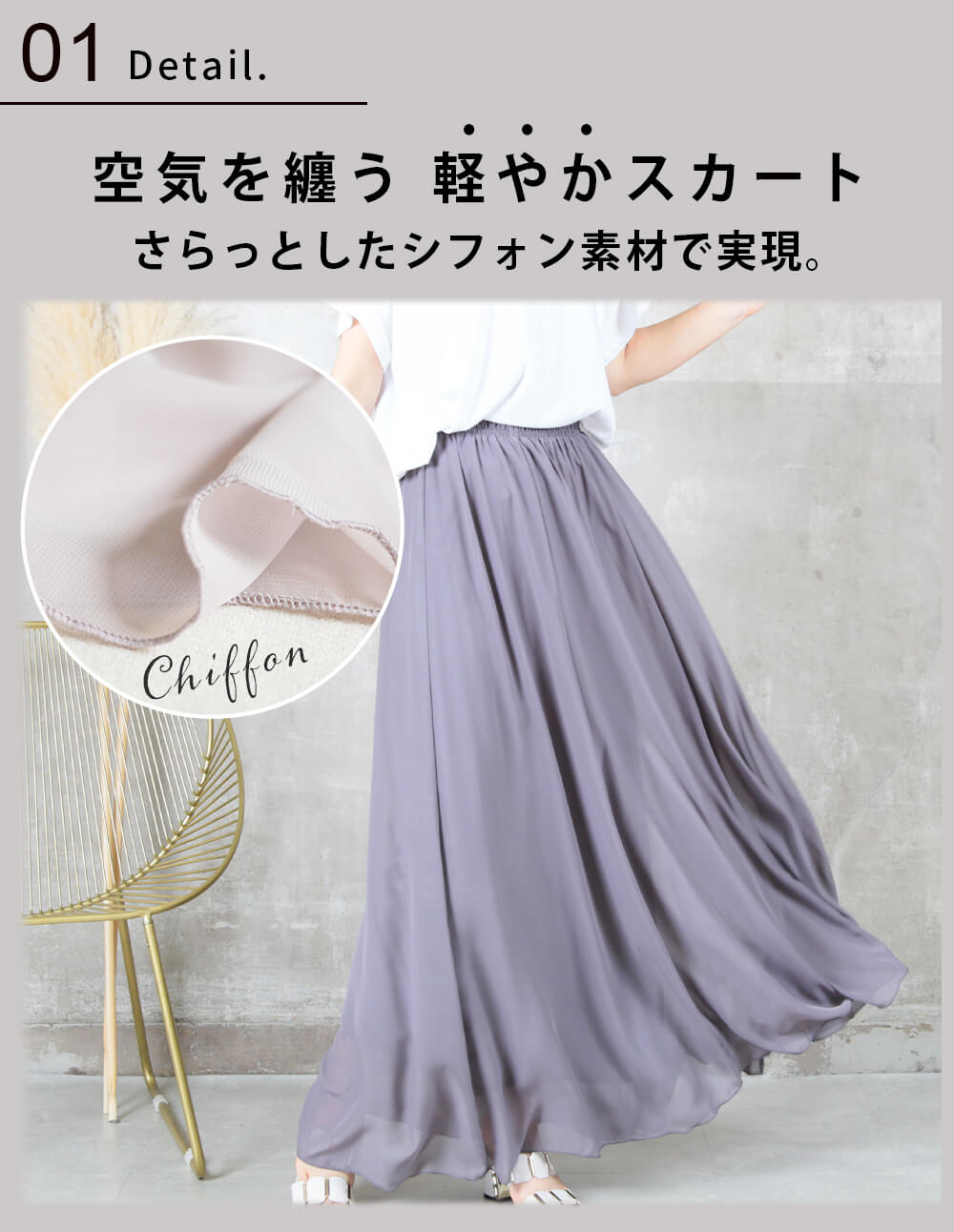 12color 80/90/100cm 薄手 マキシ シフォン フレアスカート