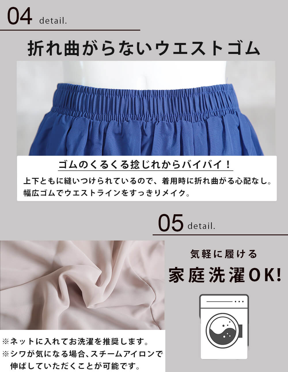 ・色移りを防ぐため、単品でのお洗濯をおすすめします。