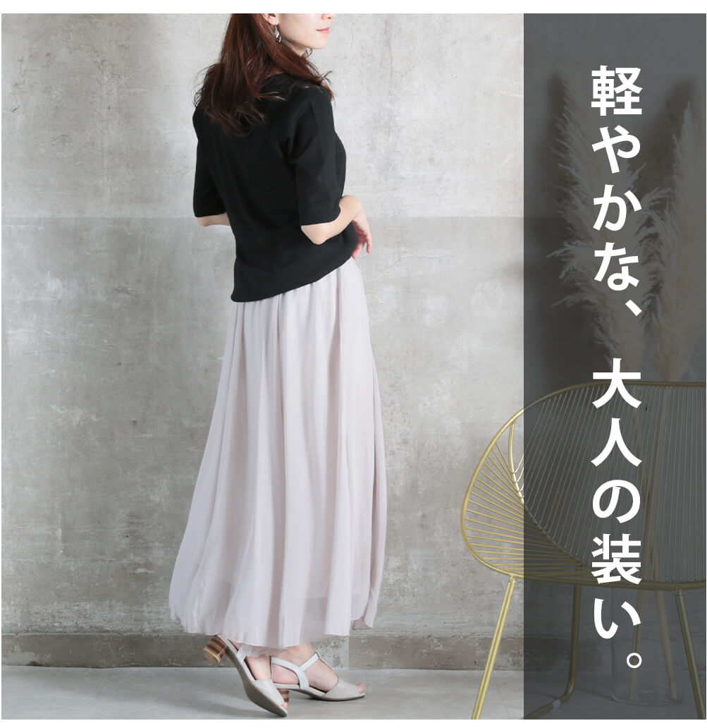 このアイテムの魅力 ゆったり穿けるのに、スタイルよく見える。 大人のためのスカートコーデに欠かせない、バランス美人な1枚。 ウエストまわりをカバーしつつ、上品な落ち感で高見えも◎。 毎日履きたくなる快適さ ウエストゴムでストレスフリーな着心地。 シンプルだけど女性らしさが際立つシルエットで、普段使いからお出かけまで幅広く活躍します。