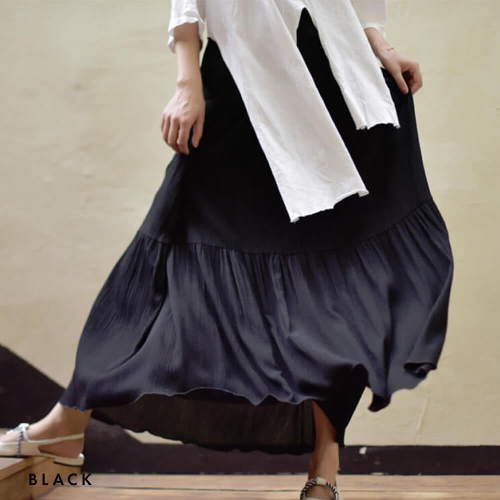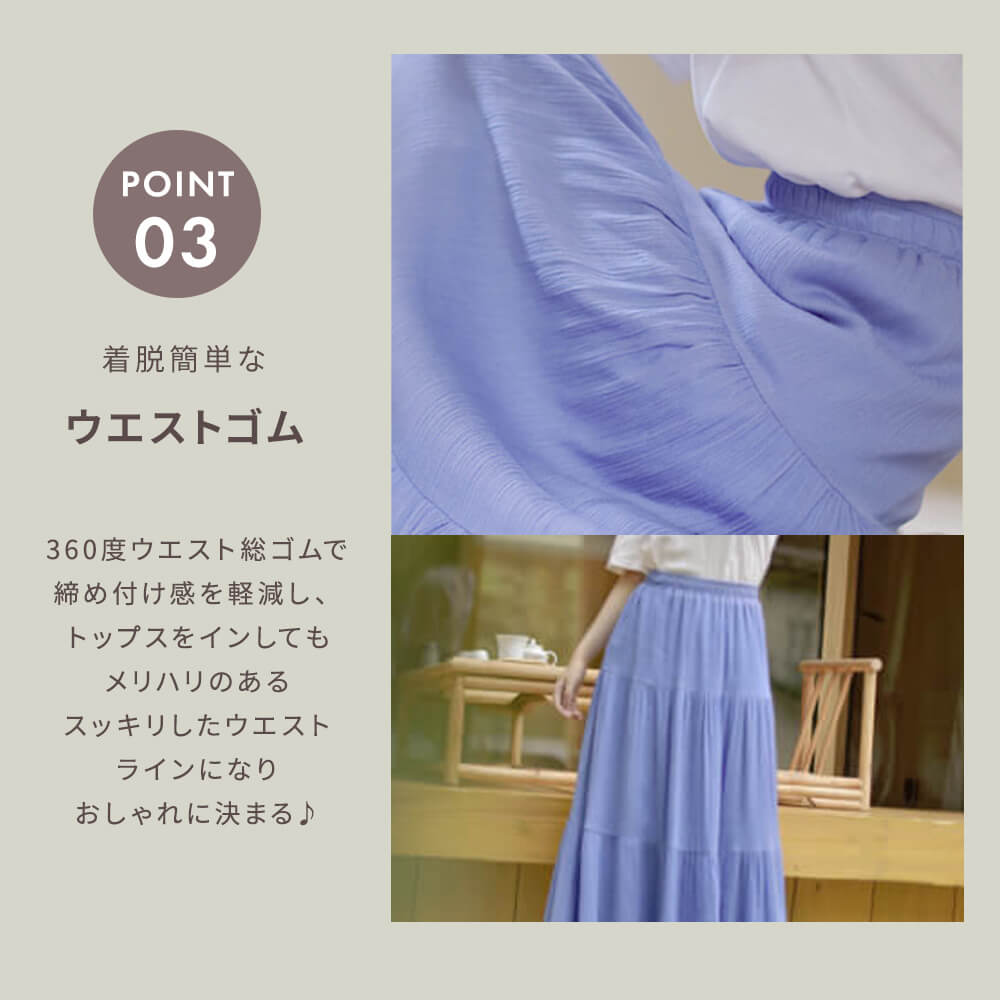 このアイテムの魅力 ゆったり穿けるのに、スタイルよく見える。 大人のためのスカートコーデに欠かせない、バランス美人な1枚。 ウエストまわりをカバーしつつ、上品な落ち感で高見えも◎。 毎日履きたくなる快適さ ウエストゴムでストレスフリーな着心地。 シンプルだけど女性らしさが際立つシルエットで、普段使いからお出かけまで幅広く活躍します。