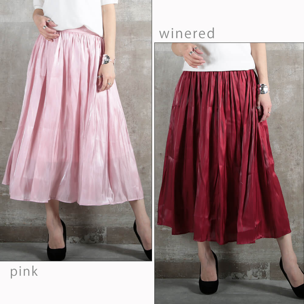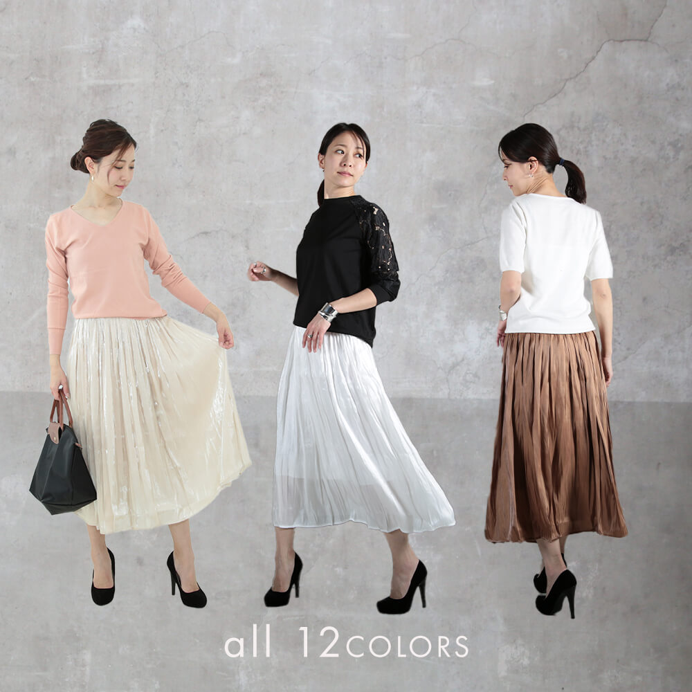 フレアスカート シルキー サテン 12color