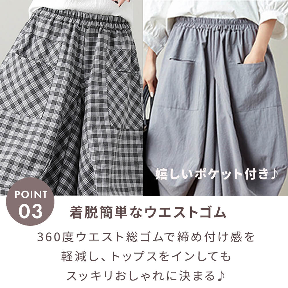 サルエルパンツ サイド紐付き ワイド バルーン 3color