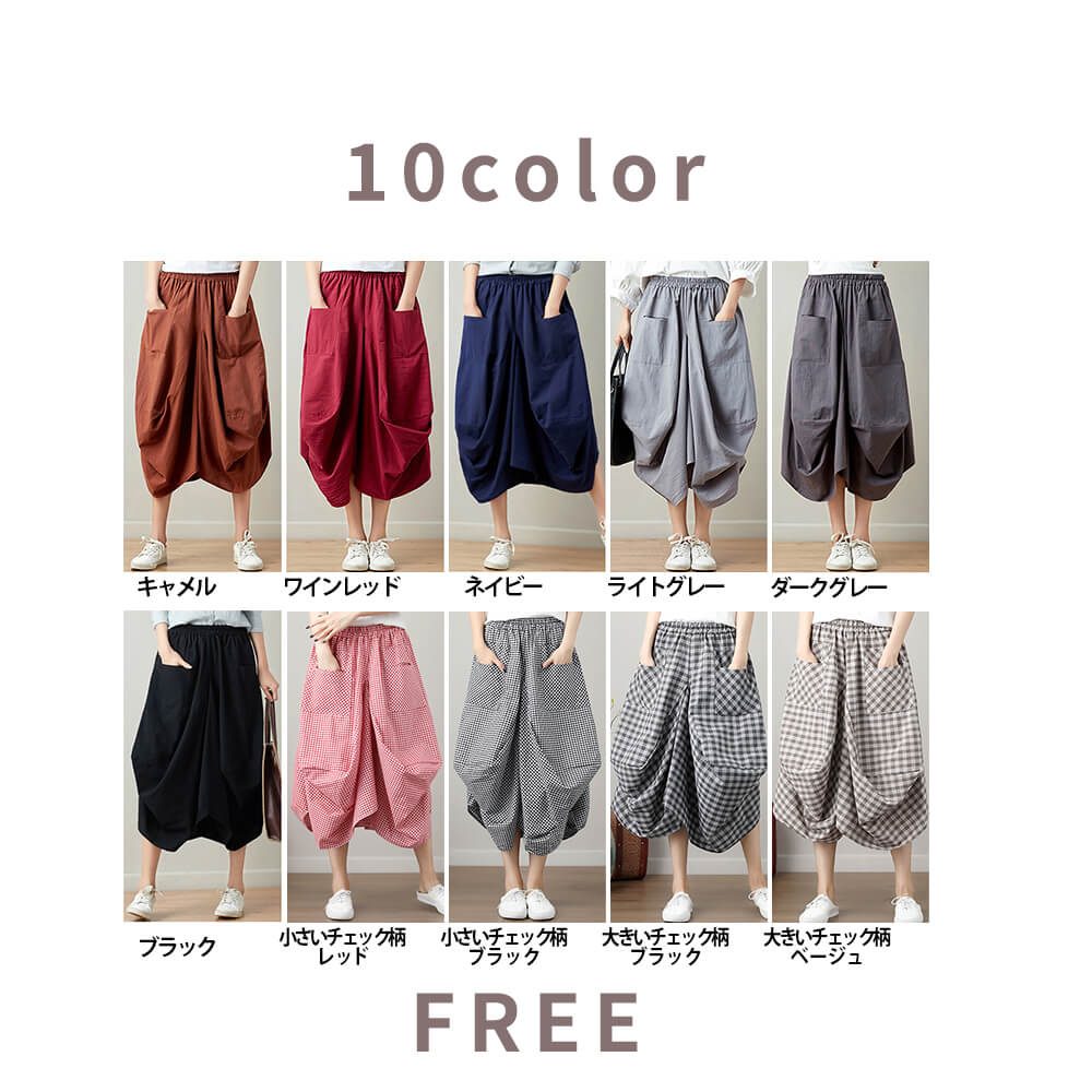 サルエルパンツ レディース きれいめ 麻 おしゃれ 涼しい ゆったり パンツ リネン M/L/2L 4color