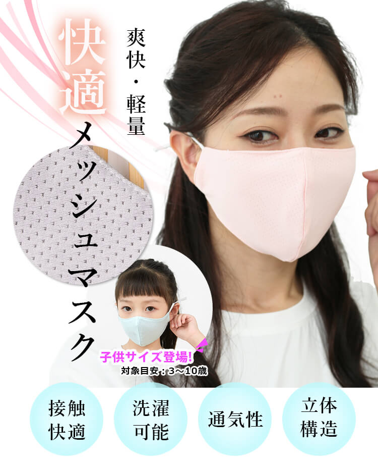 マスク 大人用/子供用 メッシュ 洗える 小顔効果 接触冷感 布マスク 10枚 セット 6color