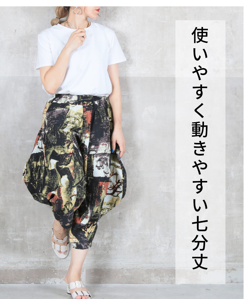 奇跡の楽ゆるサルエルパンツ レディース ゆったり ボトムス 体型カバー 美脚 ロングパンツ ウエストゴム ポケット付き ストレッチ 大きいサイズ S/M/L/XL/3L 22色