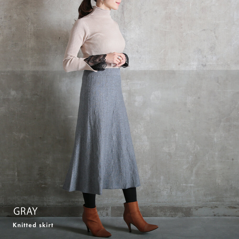 フレアスカート スカート ロング ニット aライン コーデ ゴム レディース きれいめ 5color