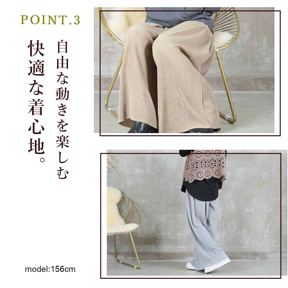 こんな場面で活躍プリーツパンツ,レディース,体型カバー,脚長効果,楽ライン,ゆったり,セルフカット,美脚,細見え,高見え,ルームウェア,洗える,春,夏,秋,冬,オールシーズン,速乾素材