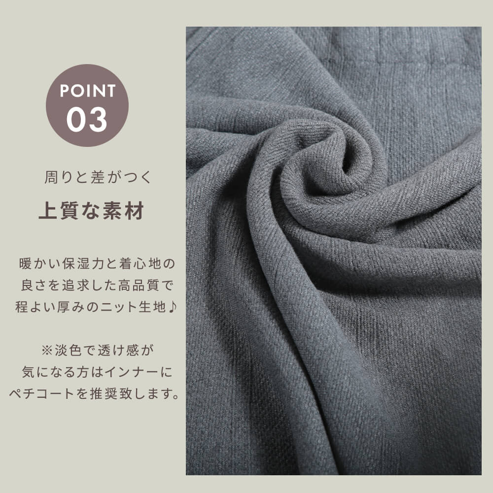 このアイテムの魅力 ゆったり穿けるのに、スタイルよく見える。 大人のためのスカートコーデに欠かせない、バランス美人な1枚。 ウエストまわりをカバーしつつ、上品な落ち感で高見えも◎。 毎日履きたくなる快適さ ウエストゴムでストレスフリーな着心地。 シンプルだけど女性らしさが際立つシルエットで、普段使いからお出かけまで幅広く活躍します。