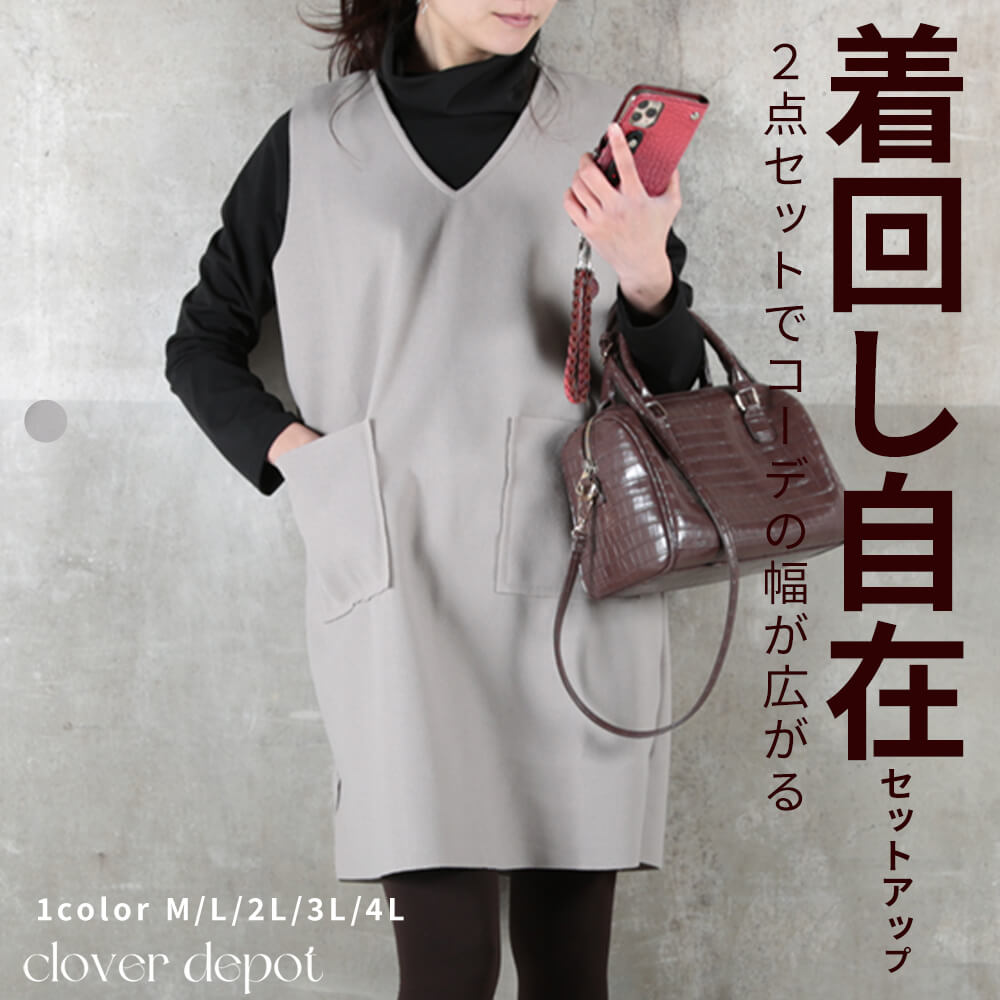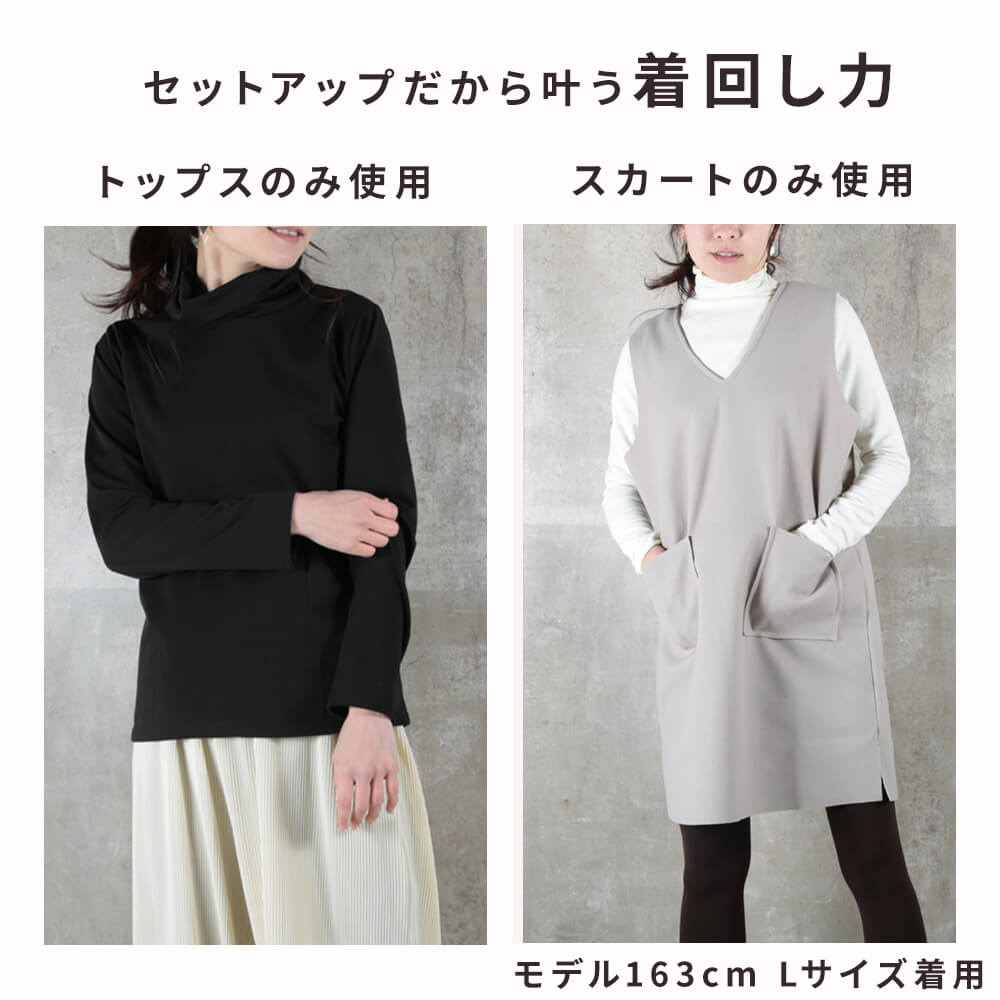 上下セット リブニット スーツ ハイネック ロングパンツ 7color