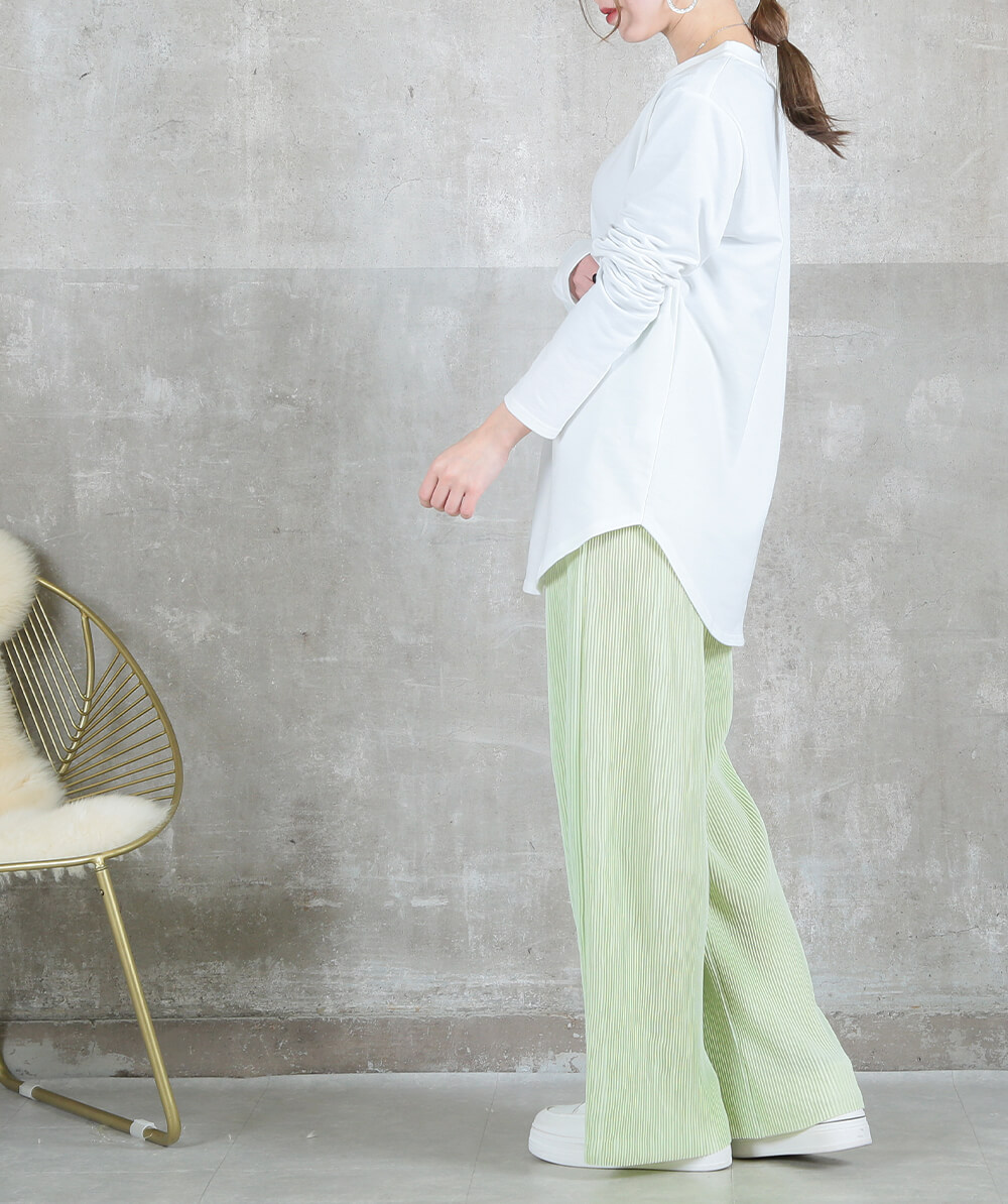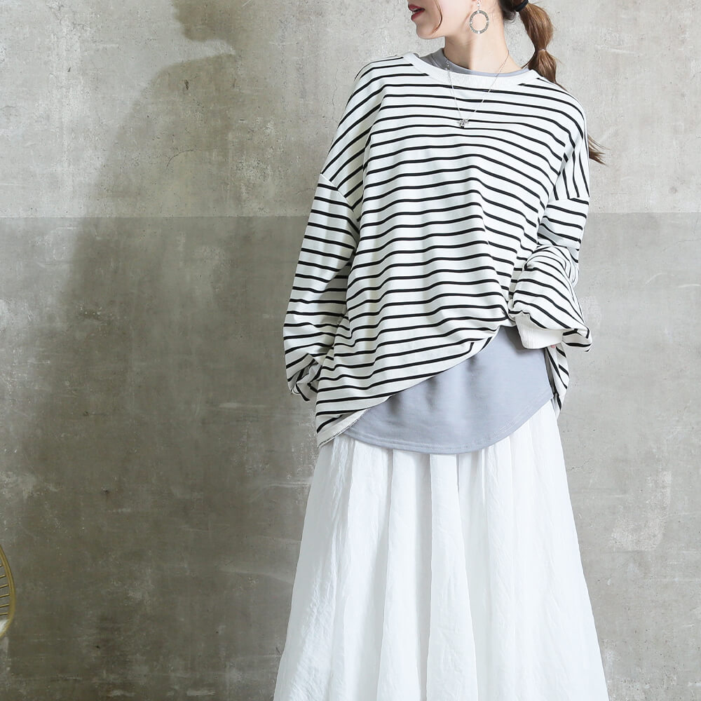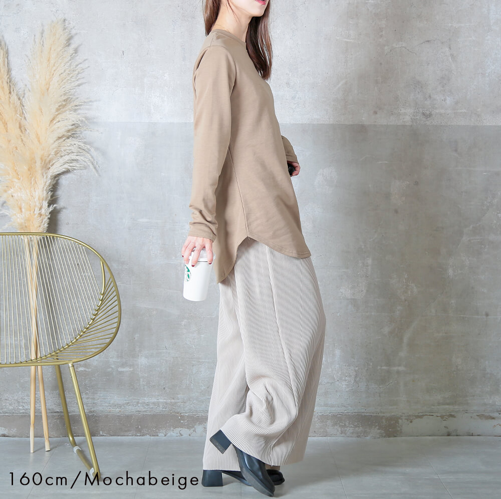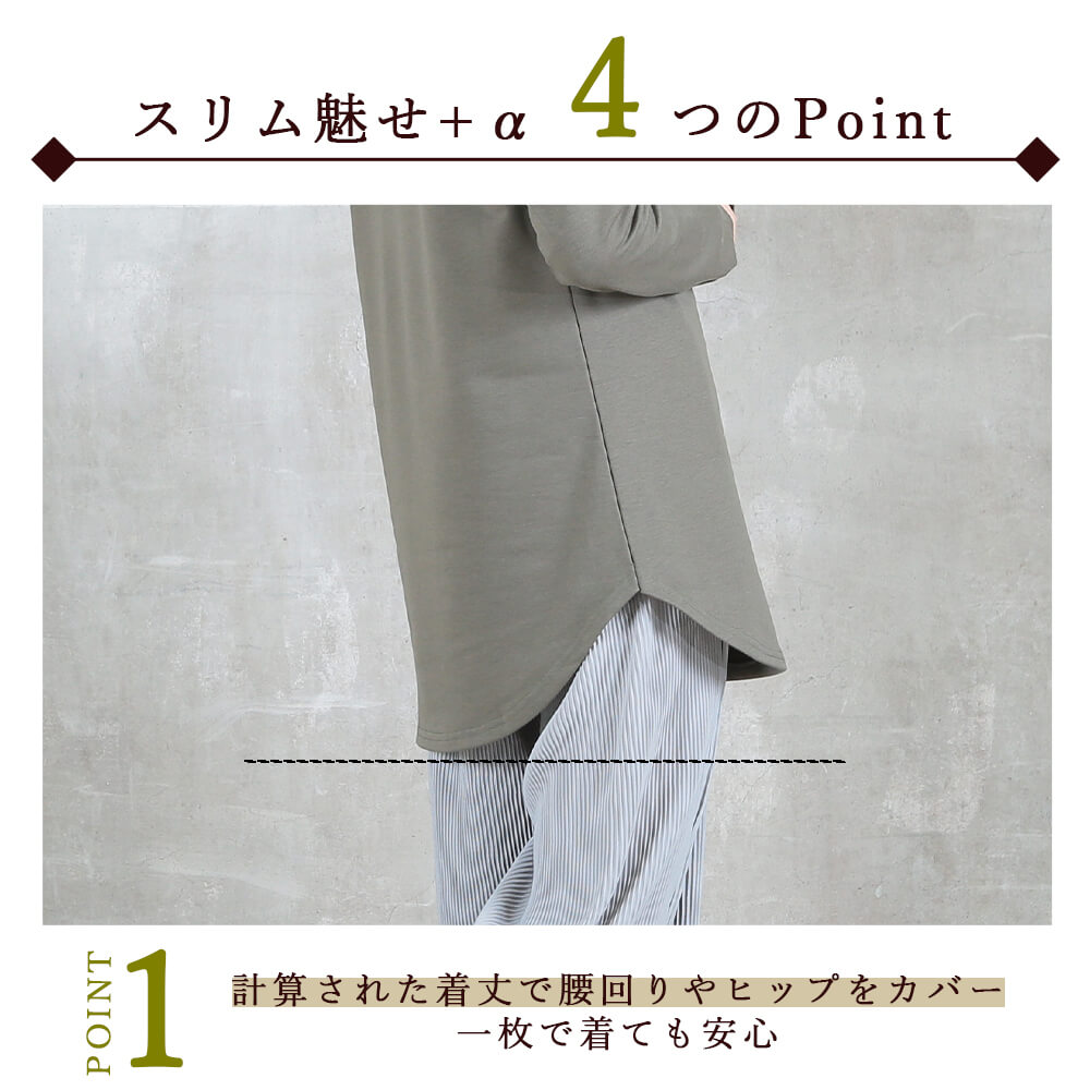 一枚で理想のカジュアルスタイルが決まる長袖カットソー。ゆったり感がありながらも着ぶくれせず、体のラインを自然にカバー。計算されたラウンドヘムで、1枚でも重ね着でもおしゃれ見えを実現。しわになりにくく、毎日着たくなる快適さが魅力です。