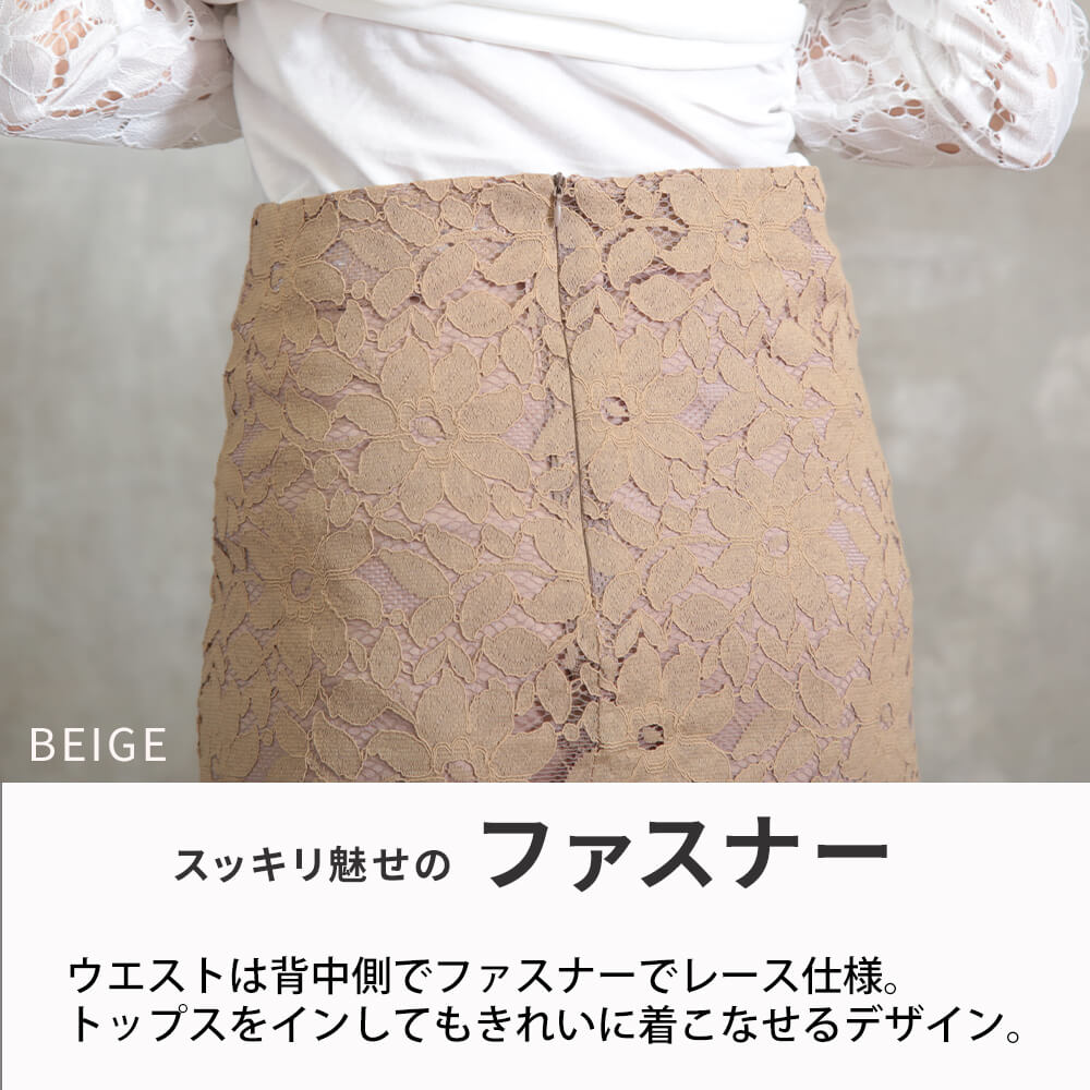 スカート レース タイト 花柄 総レース 裏地付き 膝丈 レディース M/L/2L 4color