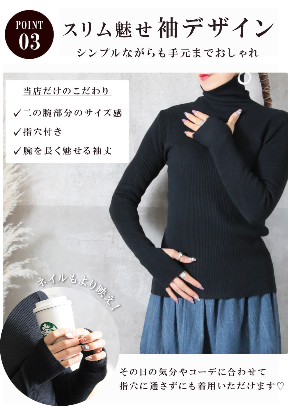 - 家でも外でも着やすい大人のデザイン