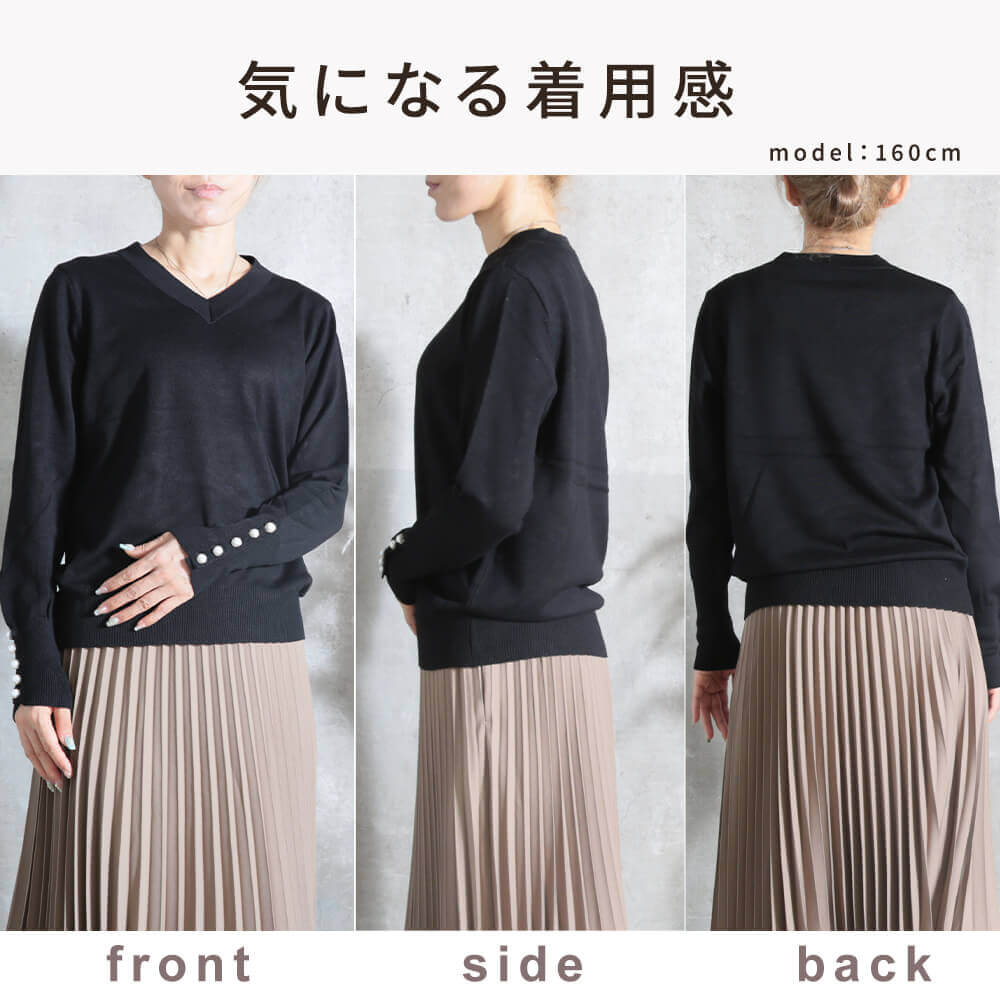上品見えしつつ、動きやすさも考慮された優秀トップスです。