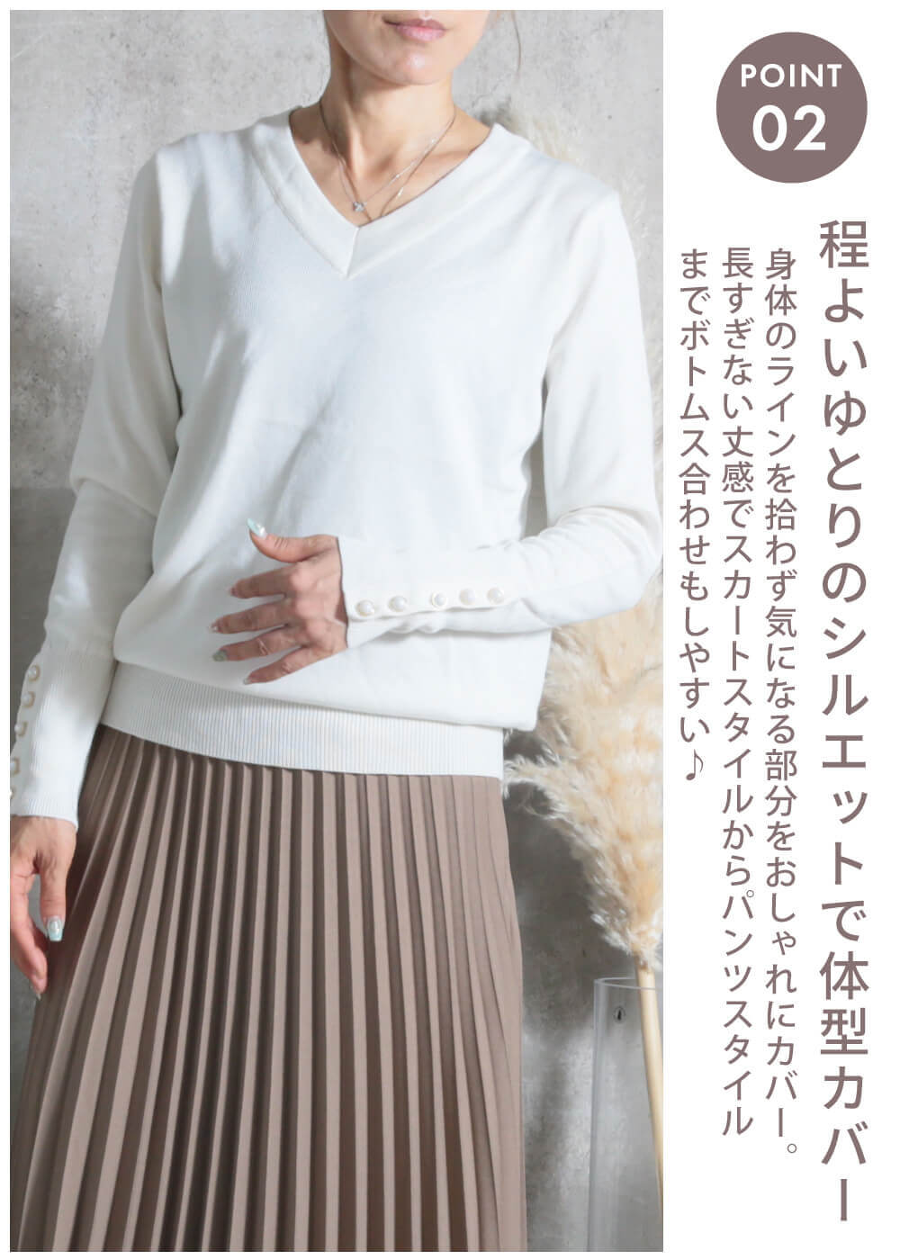- 合わせるボトムを選ばず、着回し自在