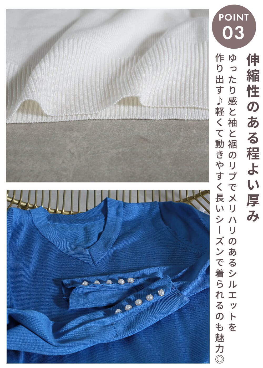 - シーズンレスで着られる素材とシルエット