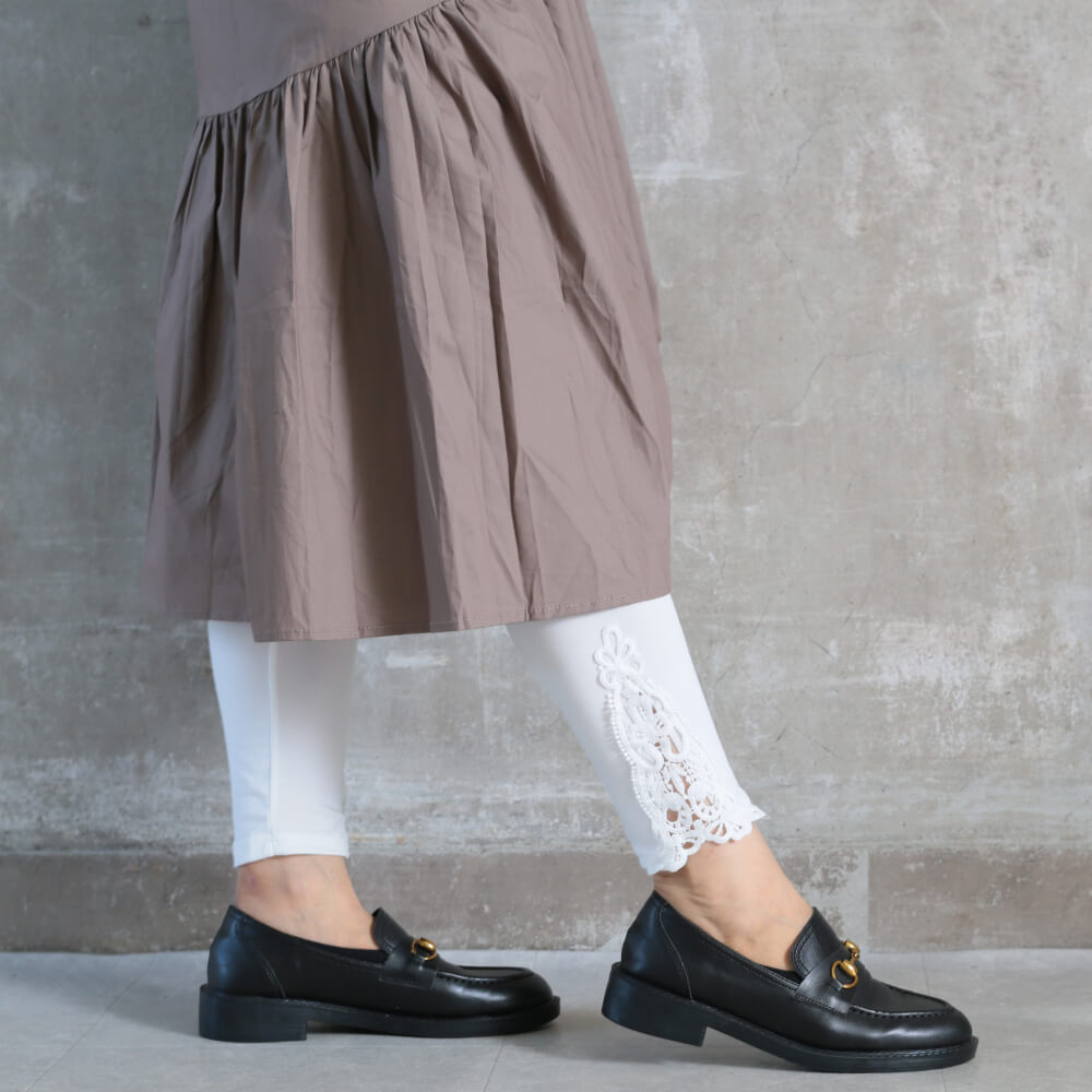 レギンス タイツ レース トレンカ ストレッチ 美脚 部屋着 スポーツウェア ヨガ 冬 フリーサイズ 2color