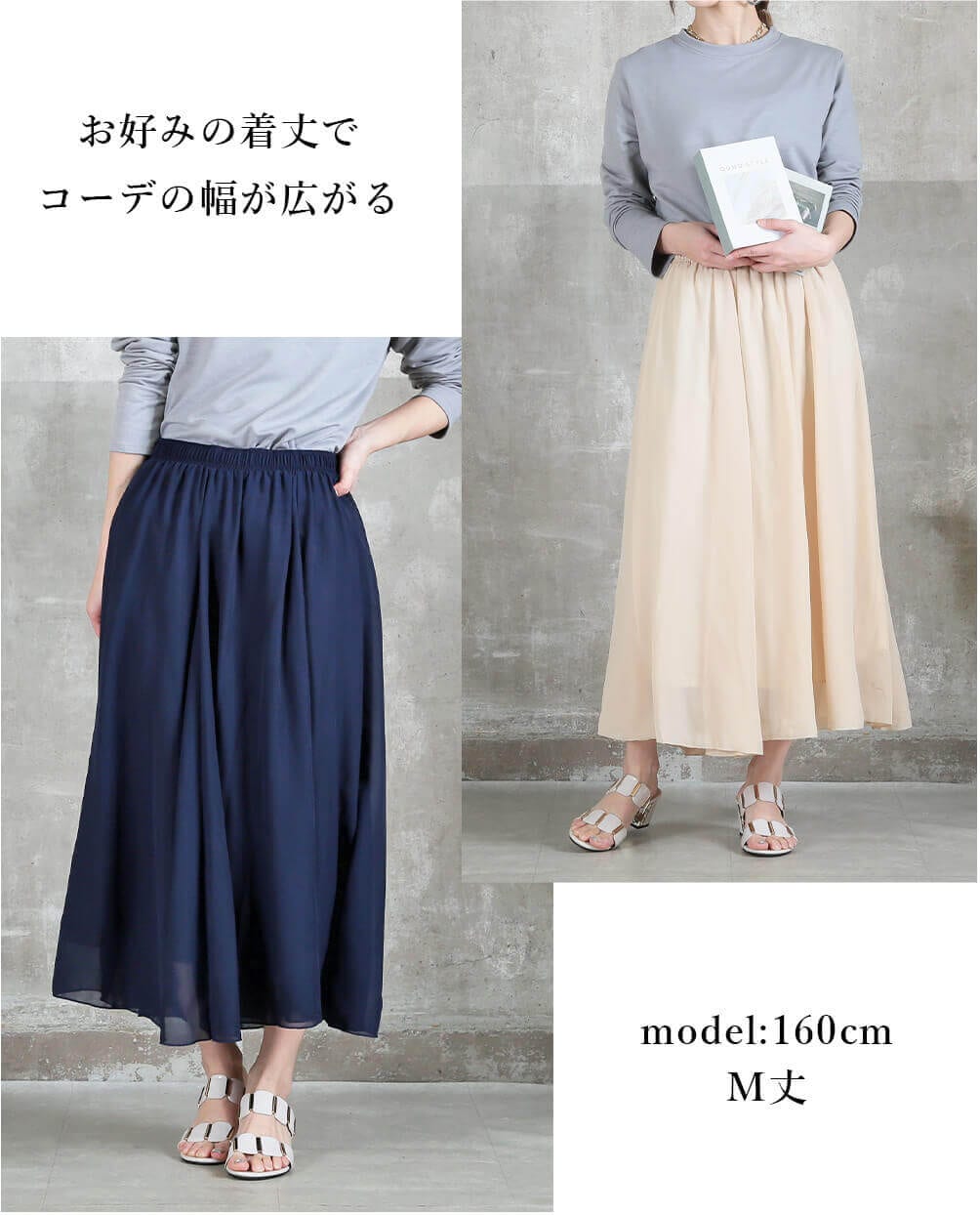 落ち感のある素材感で、上品なAラインシルエット。春夏はTシャツやブラウスと、秋冬はニットやスウェットと合わせてオールシーズン楽しめます。