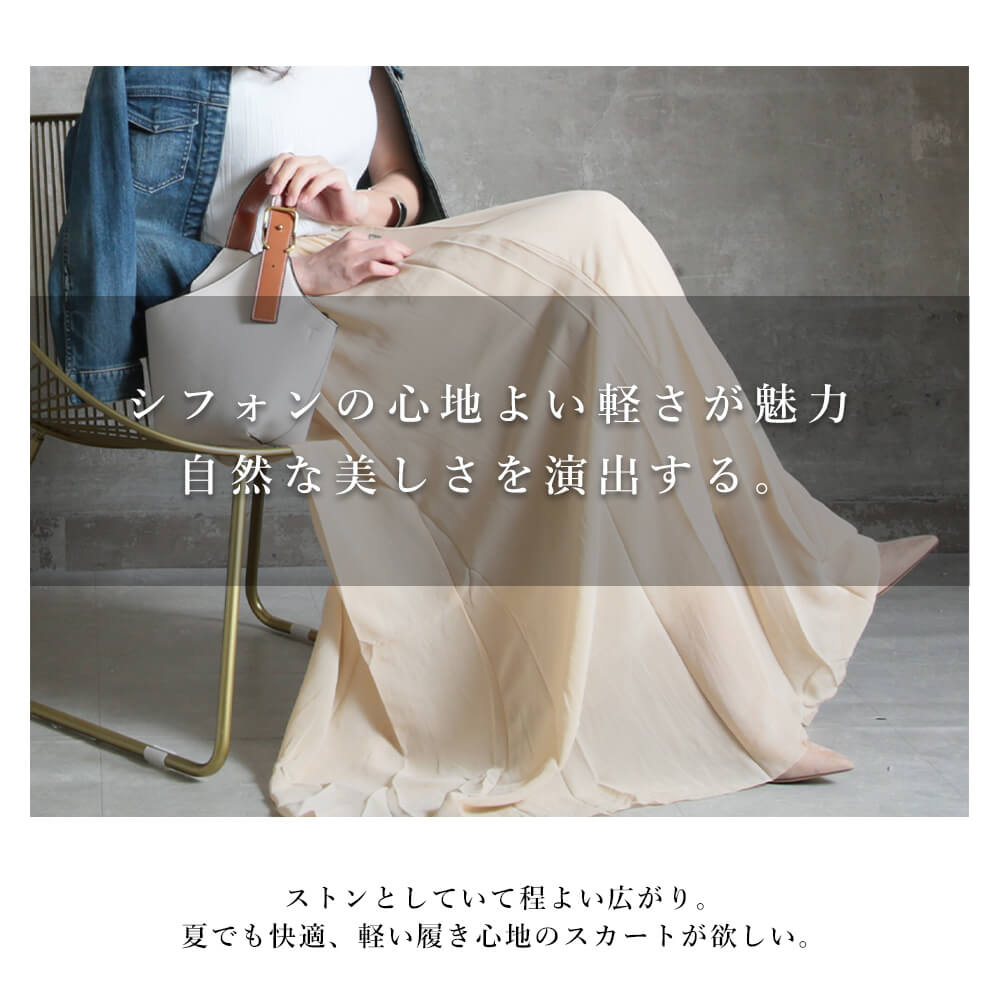 ふんわり軽やかなチュール生地が、動くたびに美しく揺れるプリーツスカート。きれいめにもカジュアルにも合わせやすいデザインで、1枚で大人フェミニンな雰囲気に。ウエストゴム仕様でストレスフリーに着用でき、体型カバーや縦長効果もバッチリです。