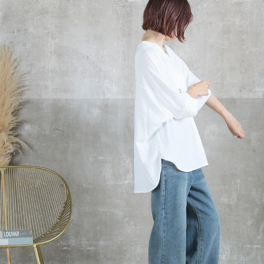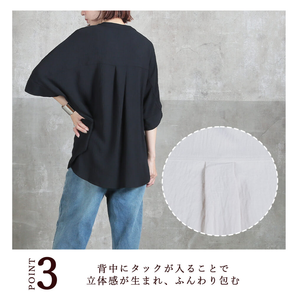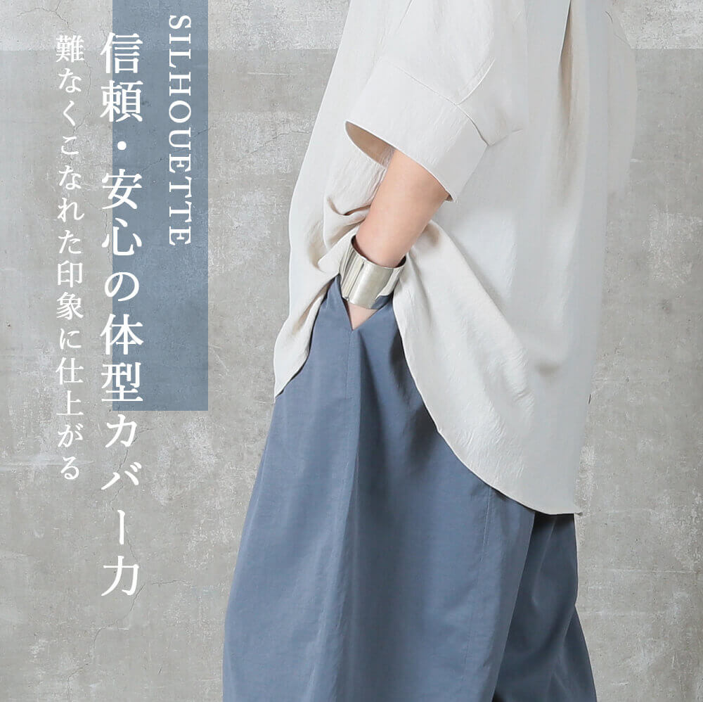 こんな場面で活躍ドルマンシャツ,体型カバー,ゆったり,長め丈,大人カジュアル,春夏秋,きれいめ,着やせ,ボリューム袖,30代,40代,50代,万能トップス,高見え,シンプル