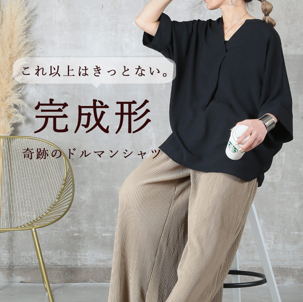 「こんなの欲しかった!」を形にした自慢のドルマンシャツ。気になるボディラインや二の腕をしっかり包み込む立体シルエットで、全方位から体型カバー。サイドから見てもすっきり見え、着るだけで自信が持てる一枚。