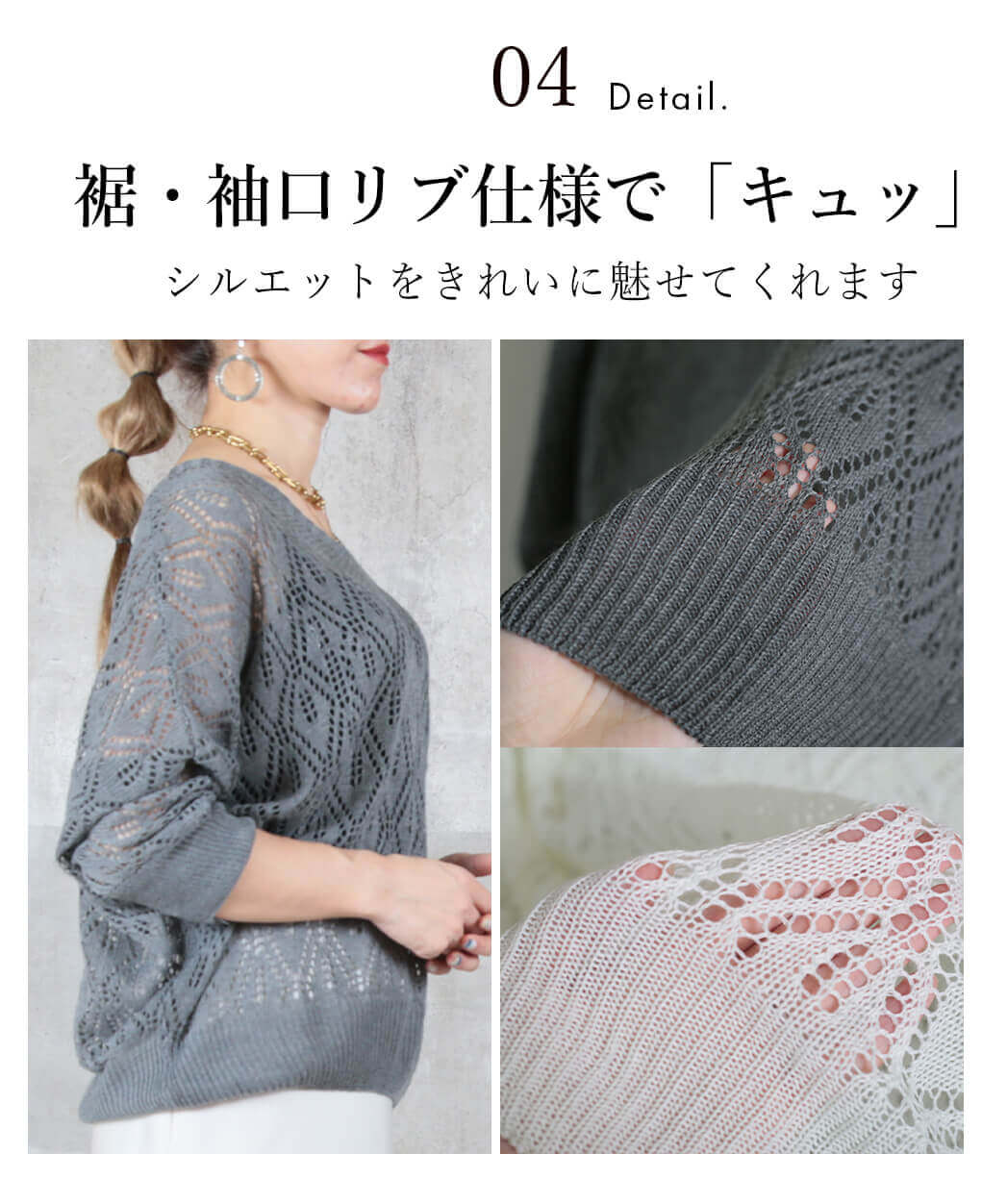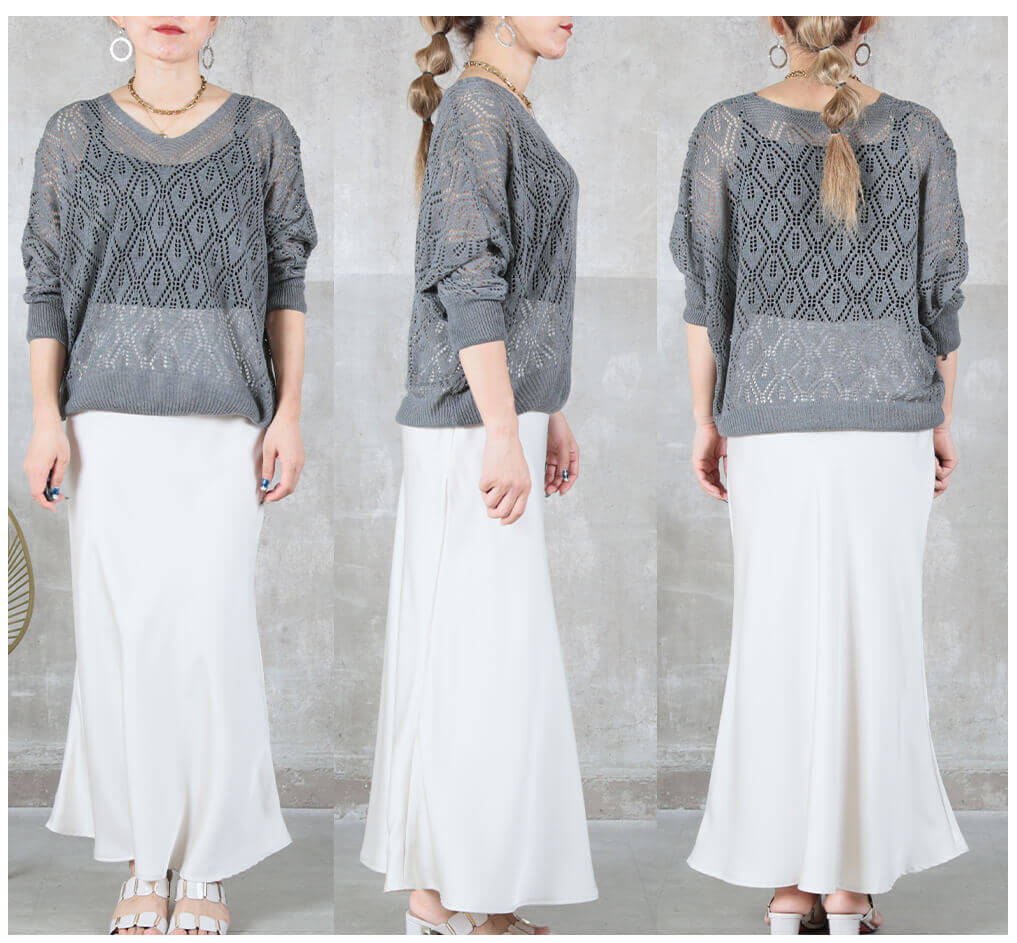 - 合わせるボトムを選ばず、着回し自在
