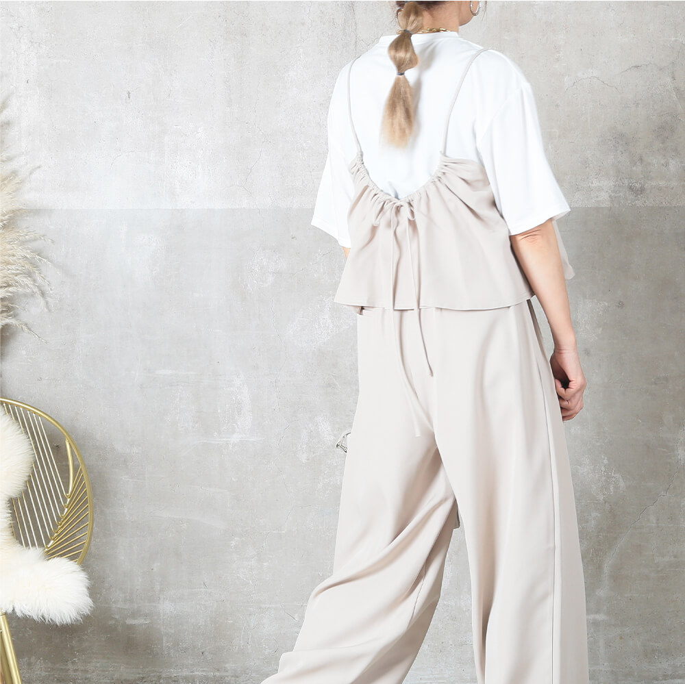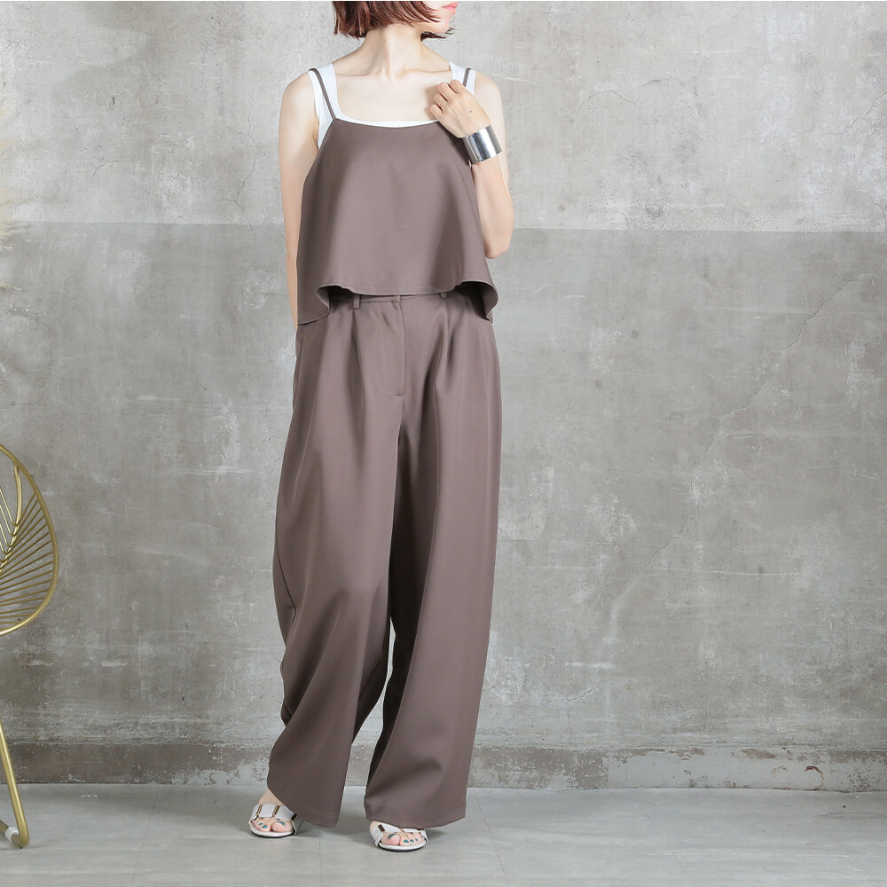 考えずに即おしゃれが決まる、キャミソール×パンツのセットアップ。程よい落ち感とワイドシルエットで体型カバーも叶い、リラクシーなのに上品見え。シンプルなインナーや羽織りと合わせて、春夏はもちろん秋冬のレイヤードコーデにも活躍する万能アイテム。