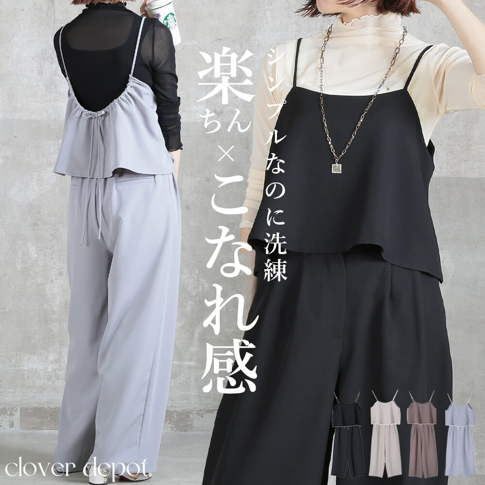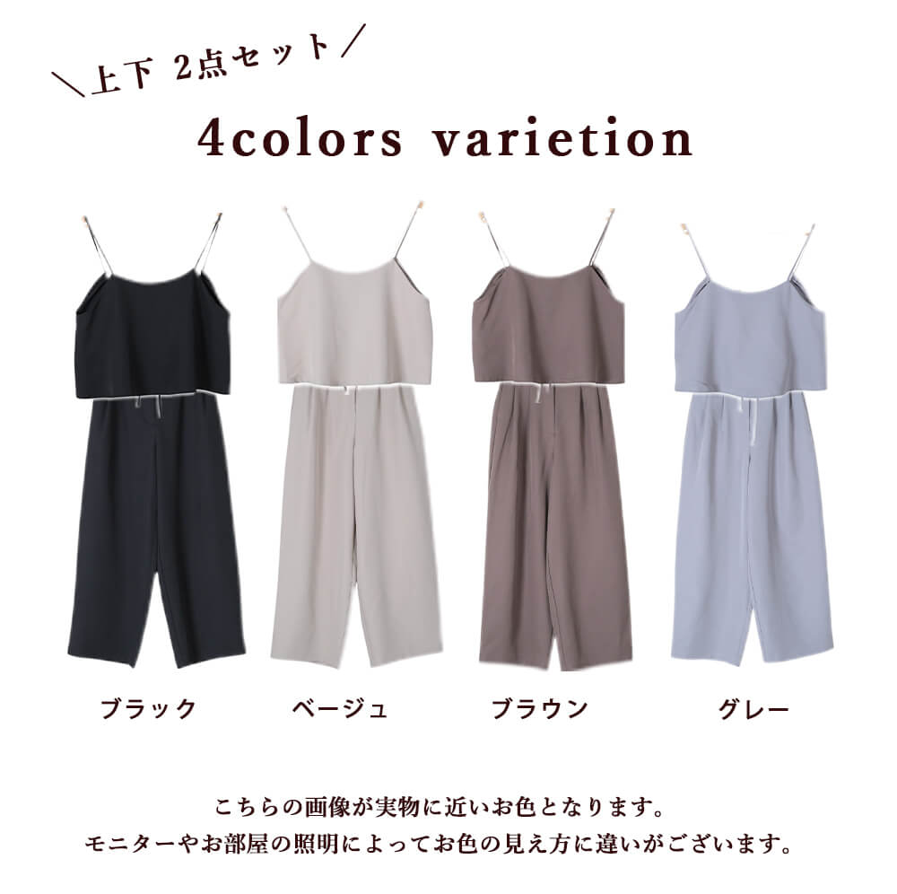 こんな場面で活躍セットアップ,キャミソール,ワイドパンツ,レディース,体型カバー,楽ちん,着回し,春夏,秋冬,高見え,カジュアル,きれいめ,リラックス,上下セット,おしゃれ,無地