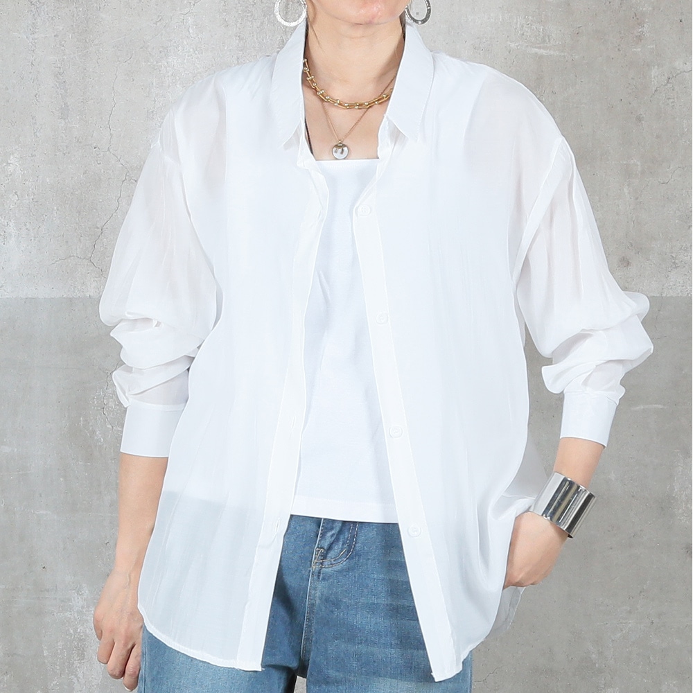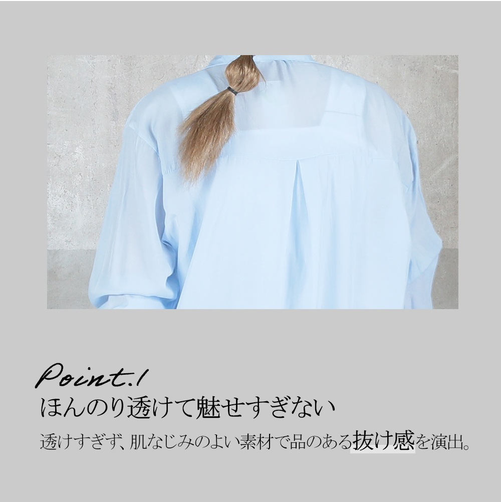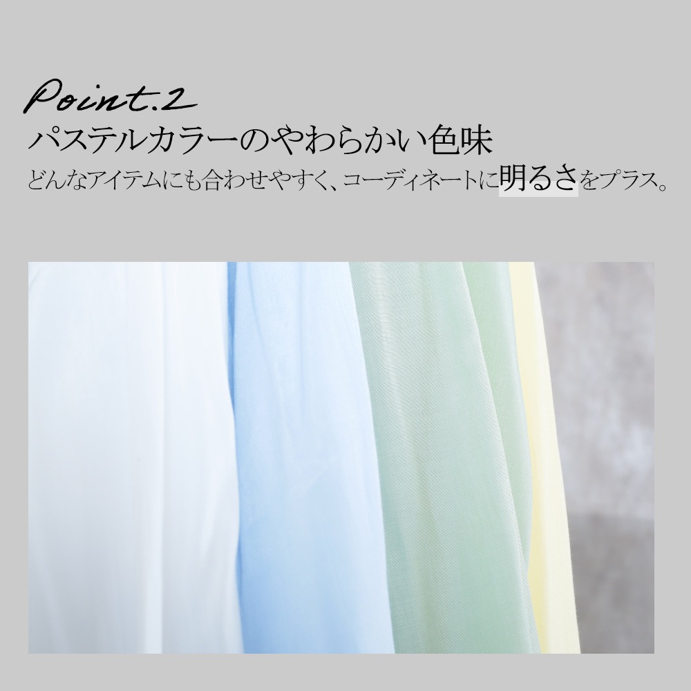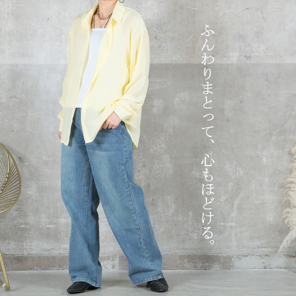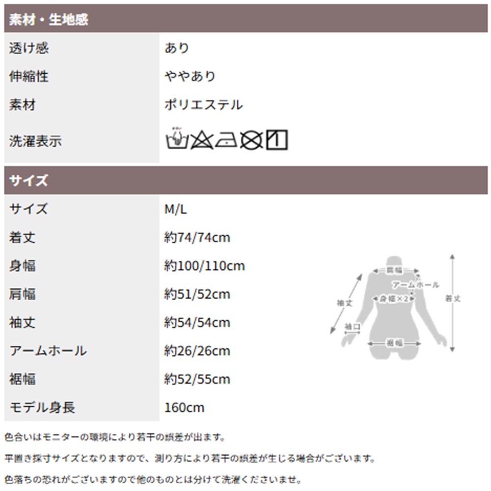 ふんわり透けるシアー素材が大人の抜け感を演出。軽く羽織るだけで華奢見えし、体型カバーも叶います。伸び感のあるチュール生地で動きやすさも抜群。MとLの2サイズ展開で、自分にぴったりの着こなしが楽しめます。