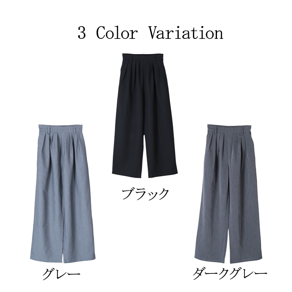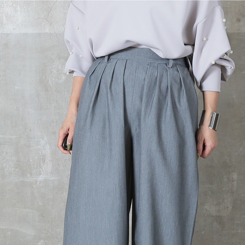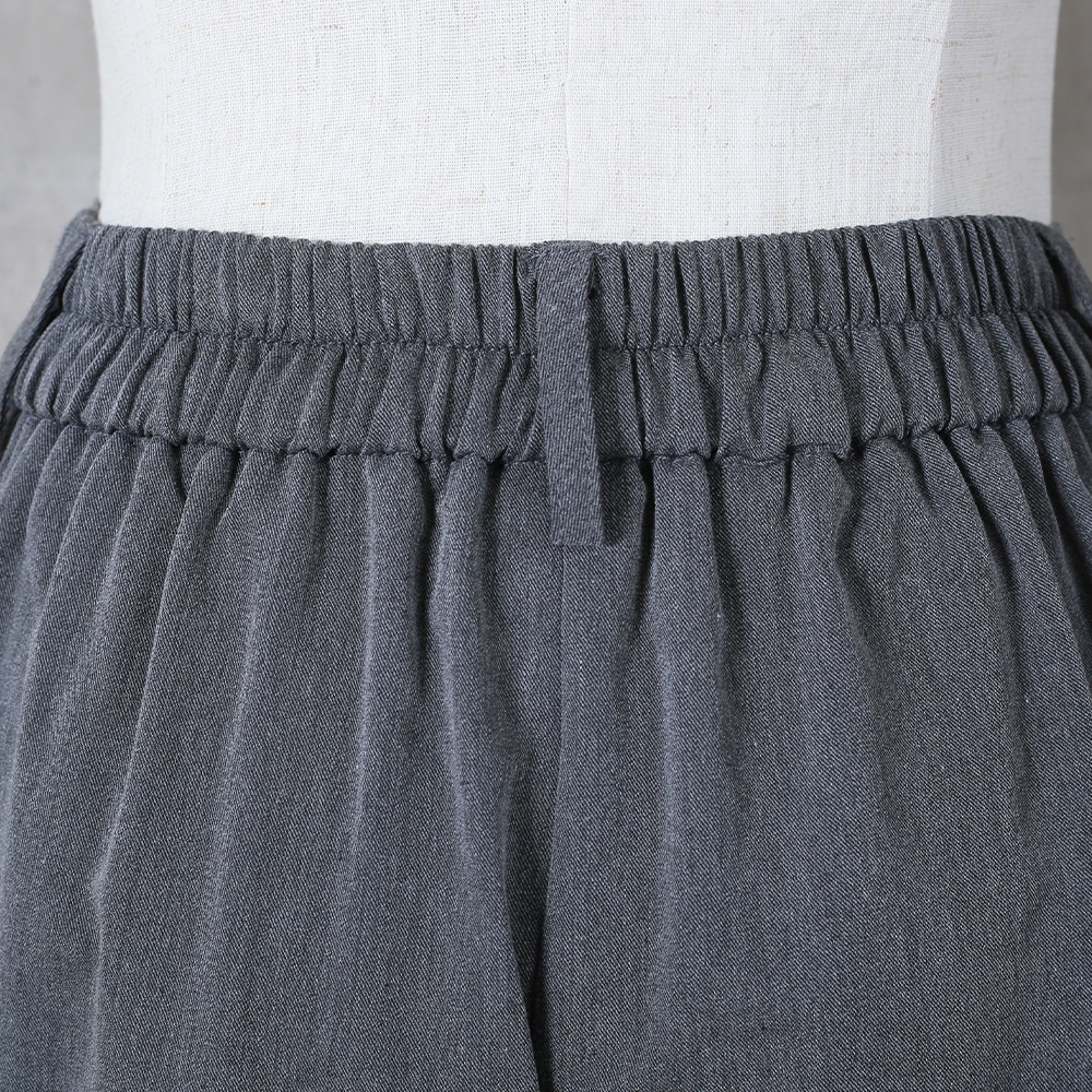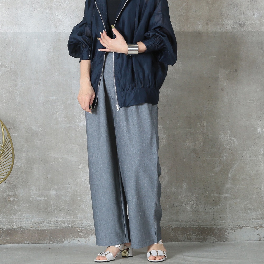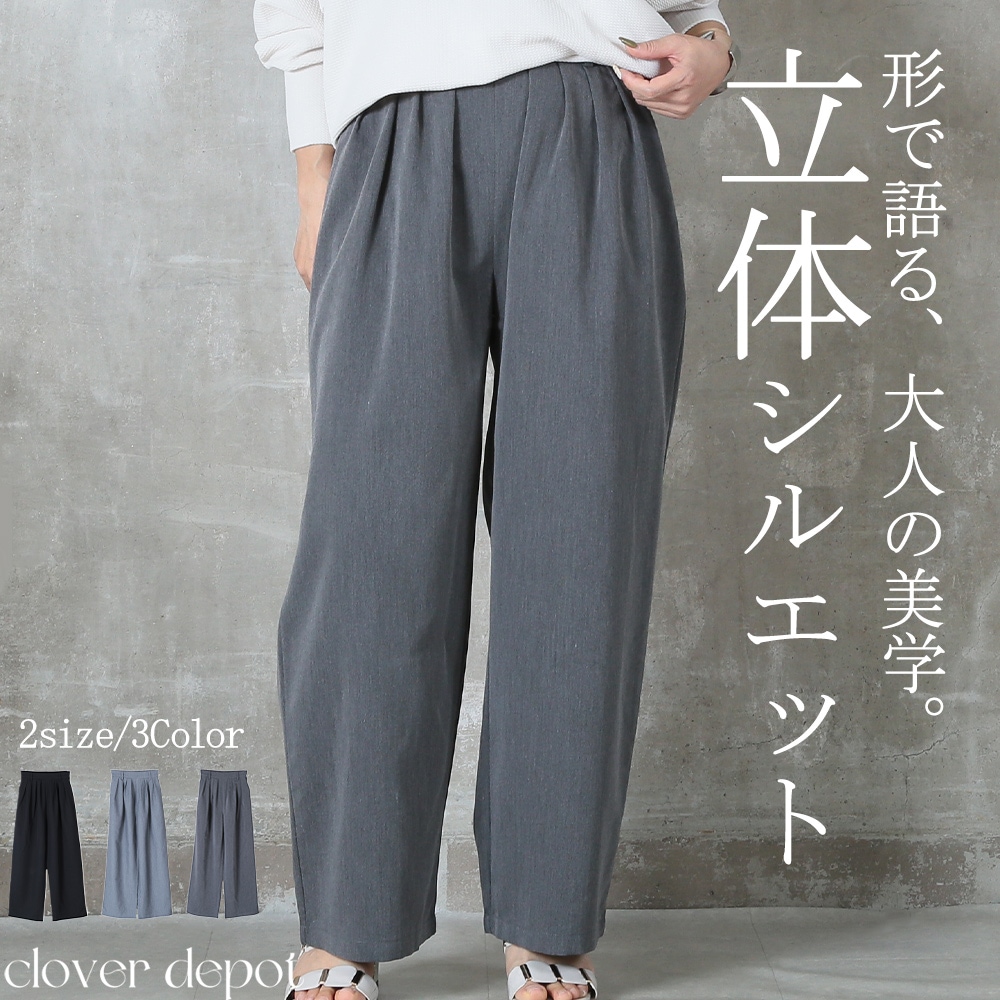美しいタック入りのワイドパンツだから、ヒップまわりはゆったりなのに腰〜脚のラインをすっきり見せてくれる一枚。ウエストはバックゴムで楽な着脱が可能、さらにサイドのベルトループ&便利なポケット付きで実用性も高い。ポリエステル素材なのでシワになりにくく、毎日のお出かけに気負わず使えるのも嬉しい。