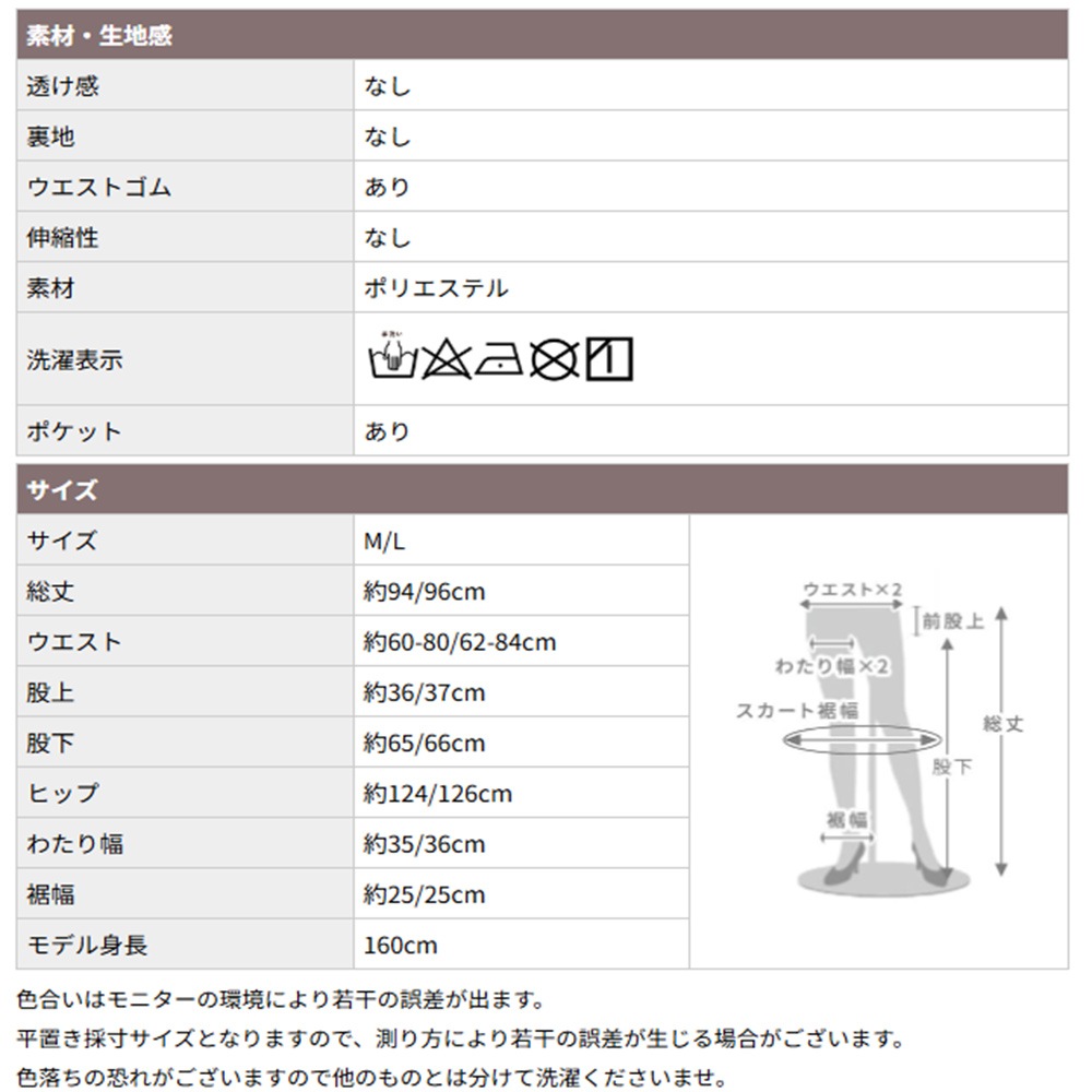 毎日穿きたくなる快適さ動きの邪魔にならない適度なゆとりと柔らかな素材感で、デスクワークでもママの送迎でも疲れにくい。洗濯機でのケアも簡単だから、日常使いのボトムとして頼れる存在です。MとLの2サイズ展開で、自分に合った着丈感にも調整できるのもポイント。